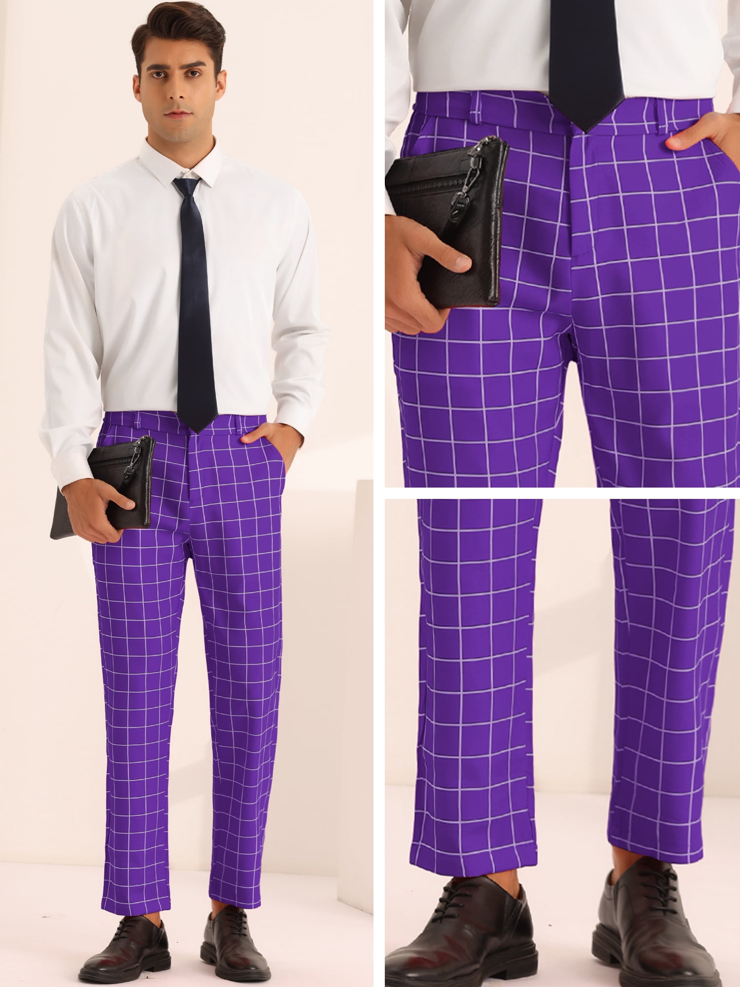 purple checkered trousers