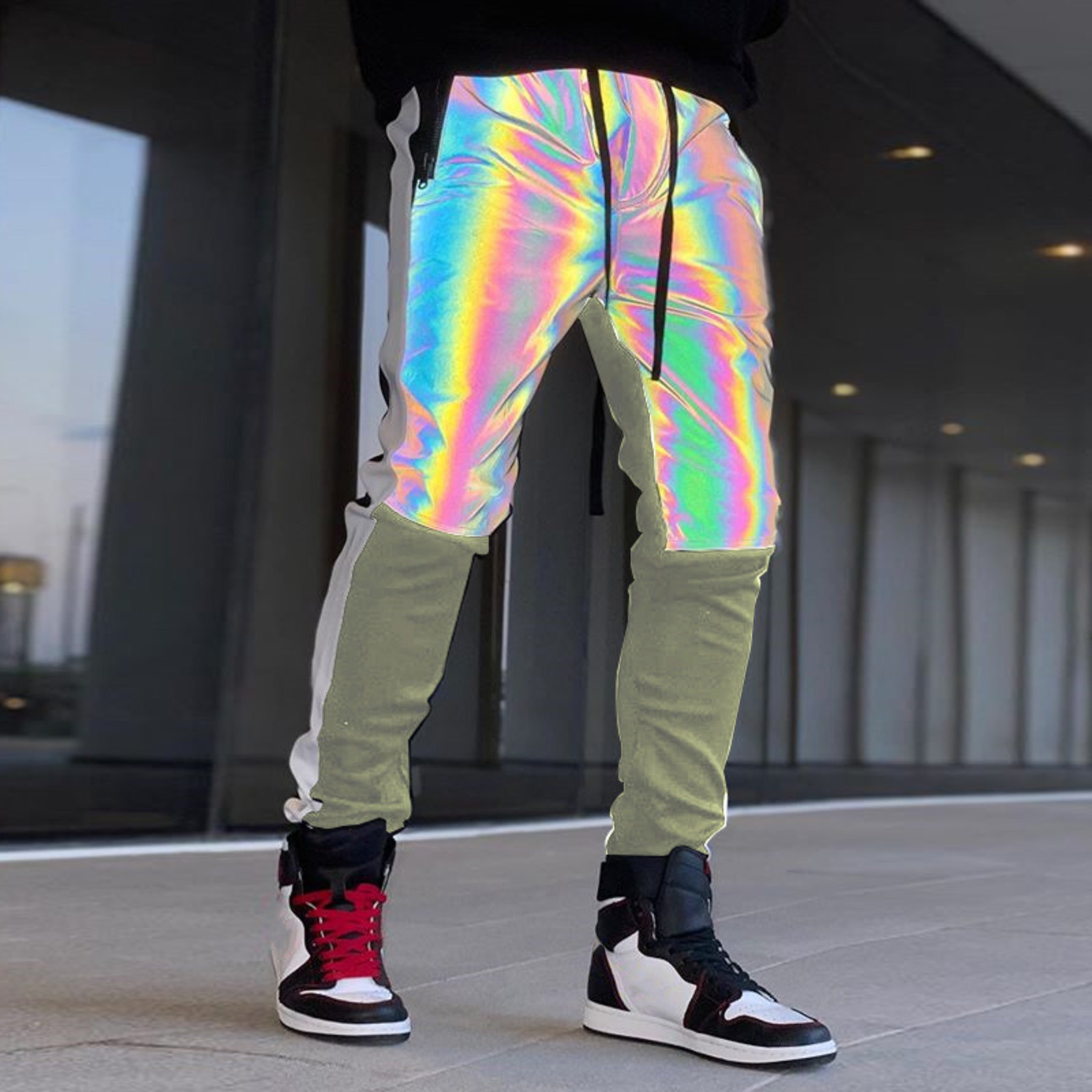 rainbow reflective tactical track pants