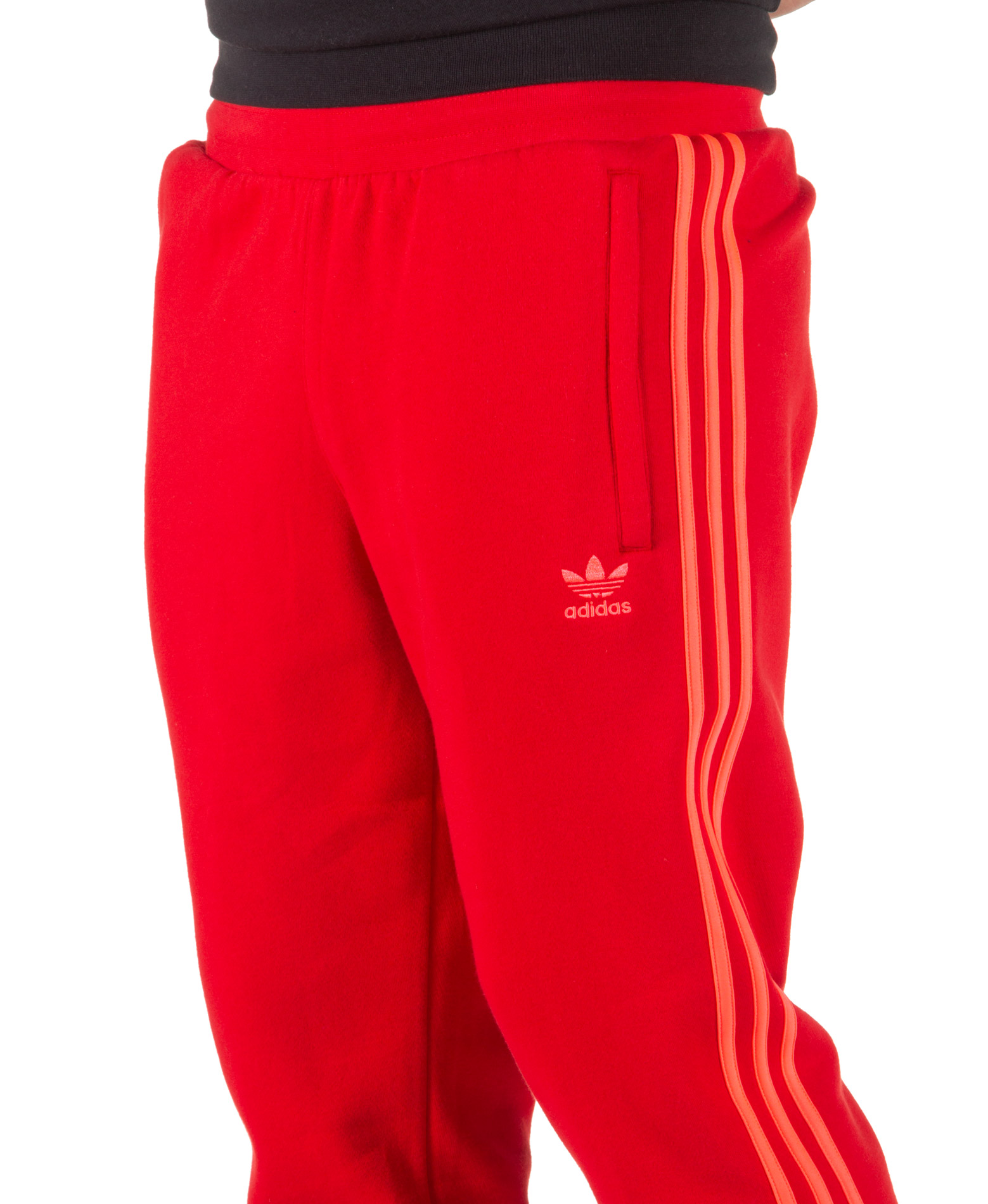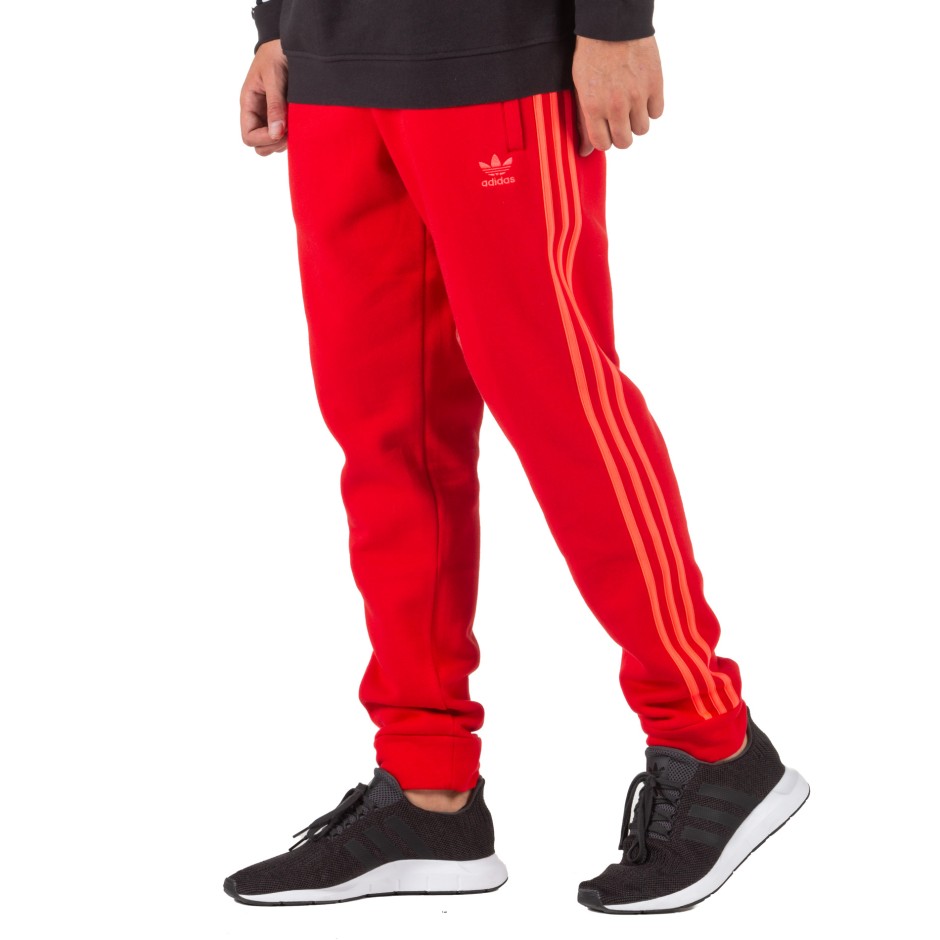 red adidas pants half stripe
