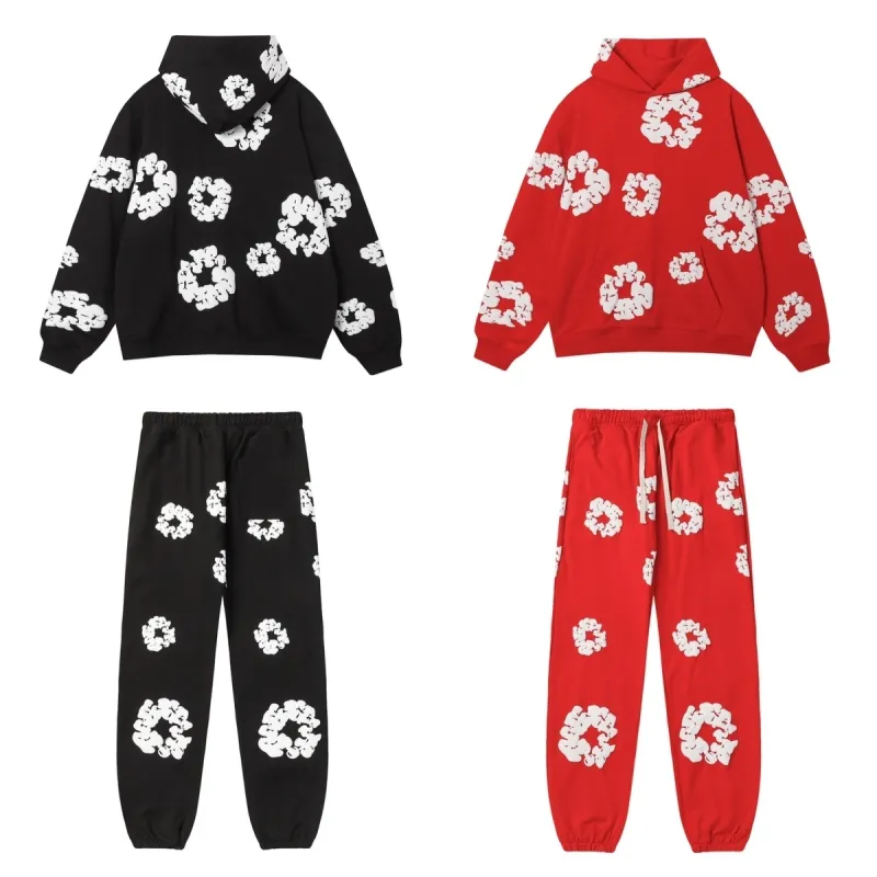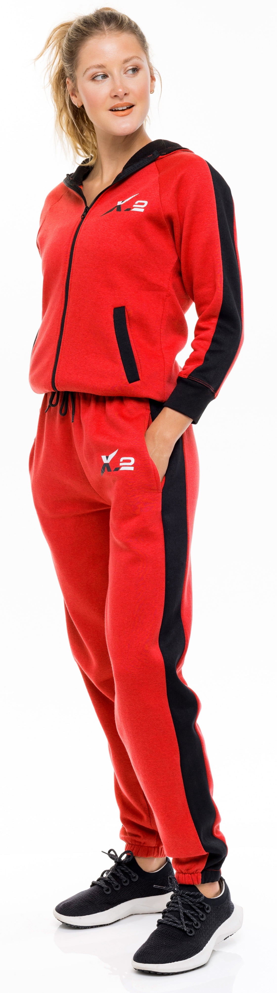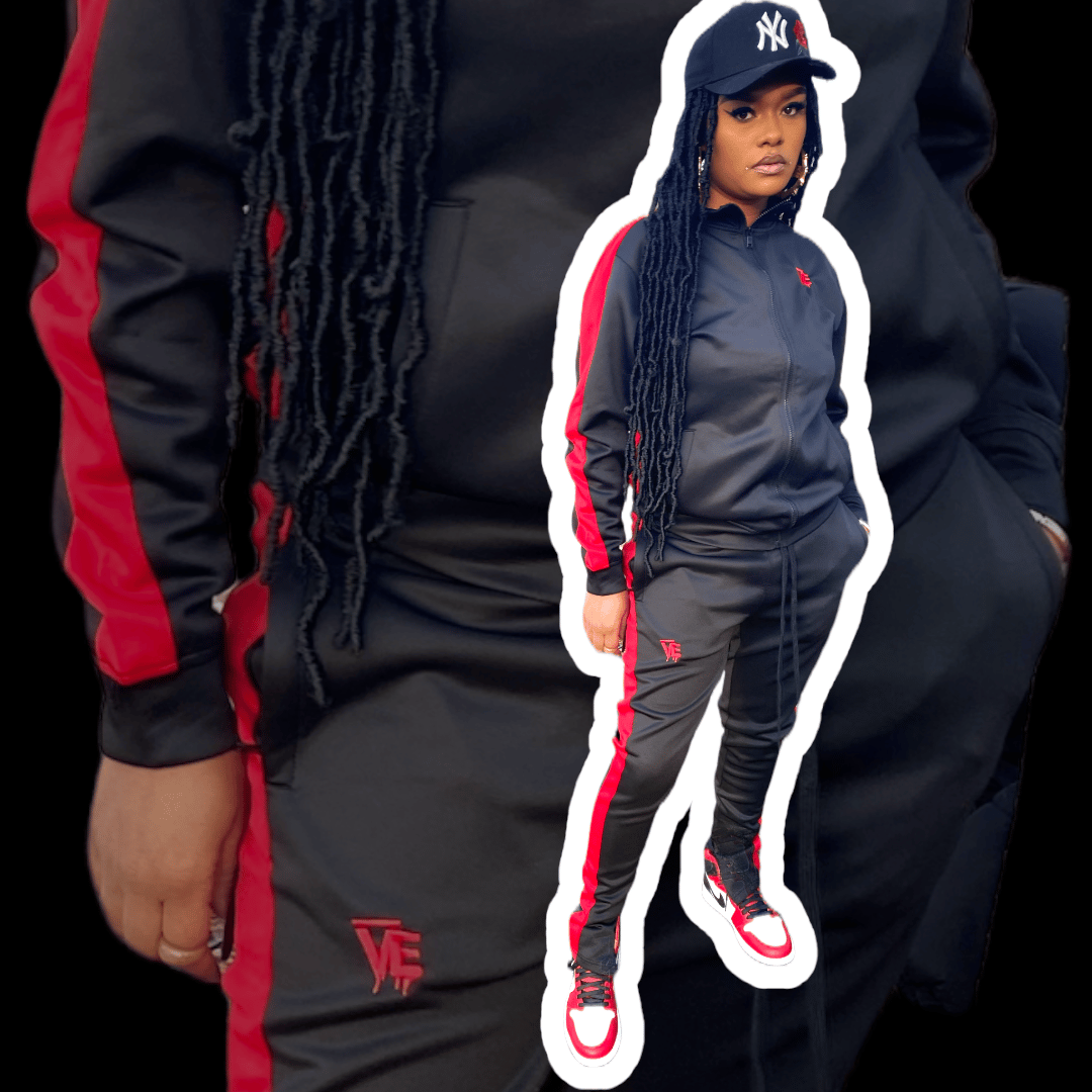 red and black sweatsuit