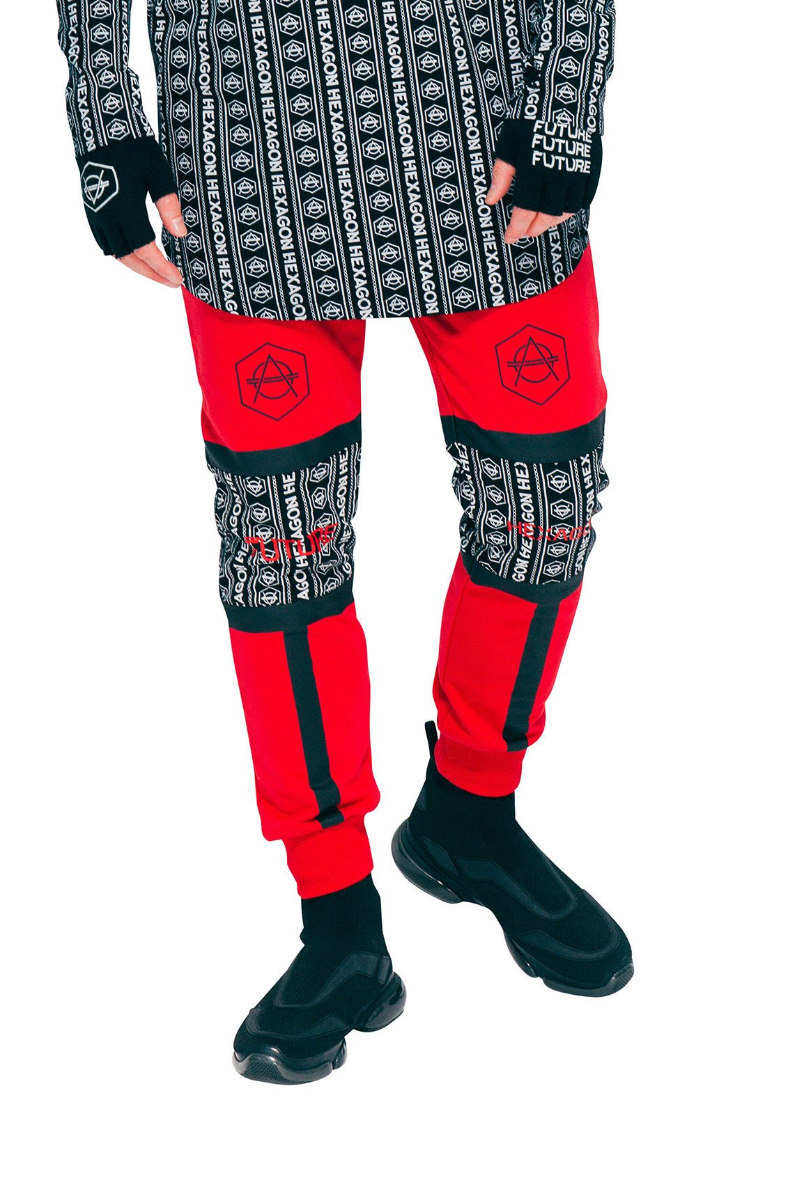 red bandanna pants