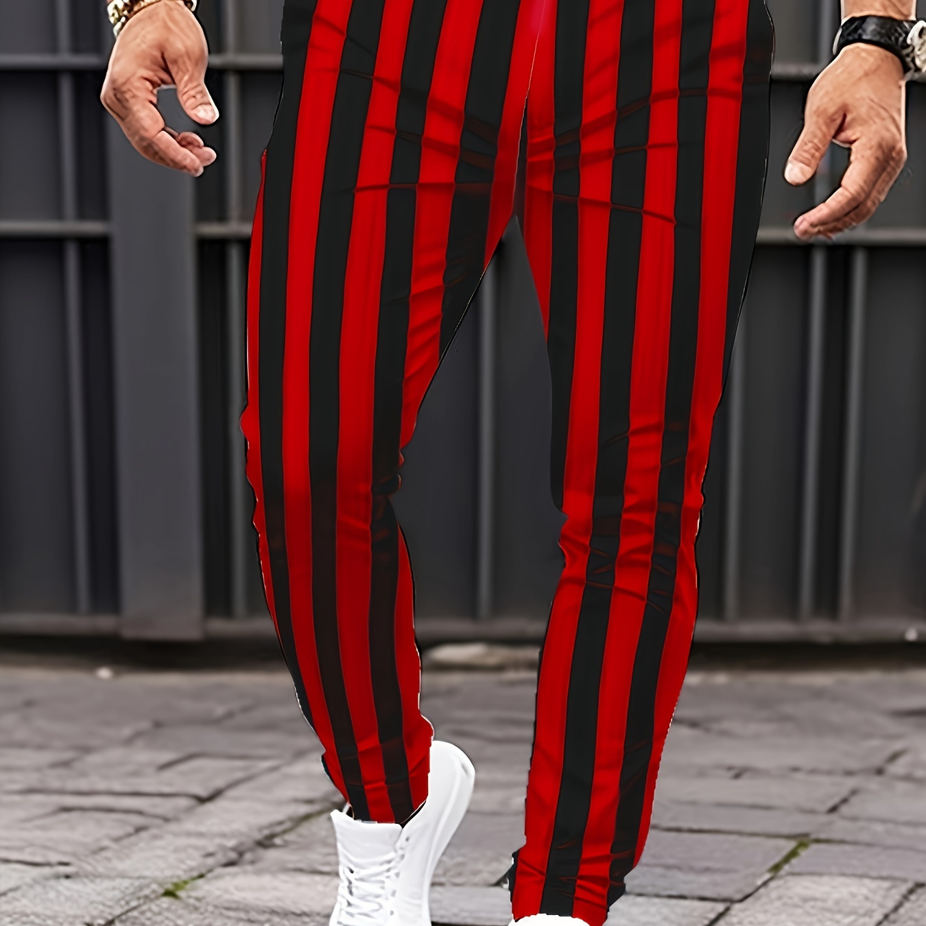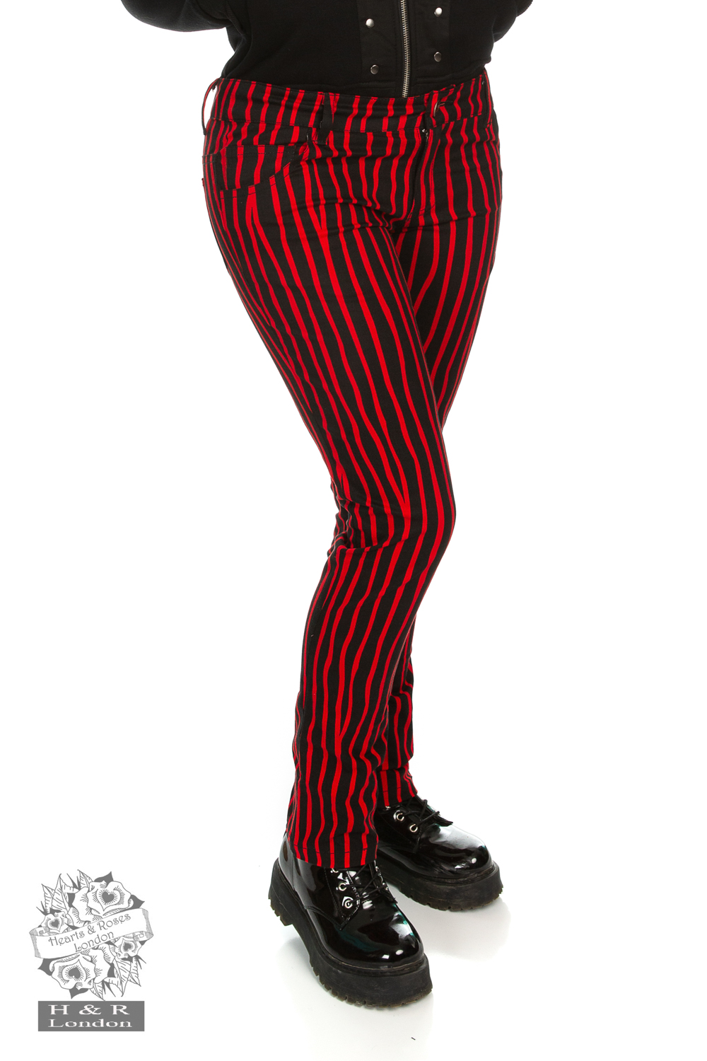 red black striped pants