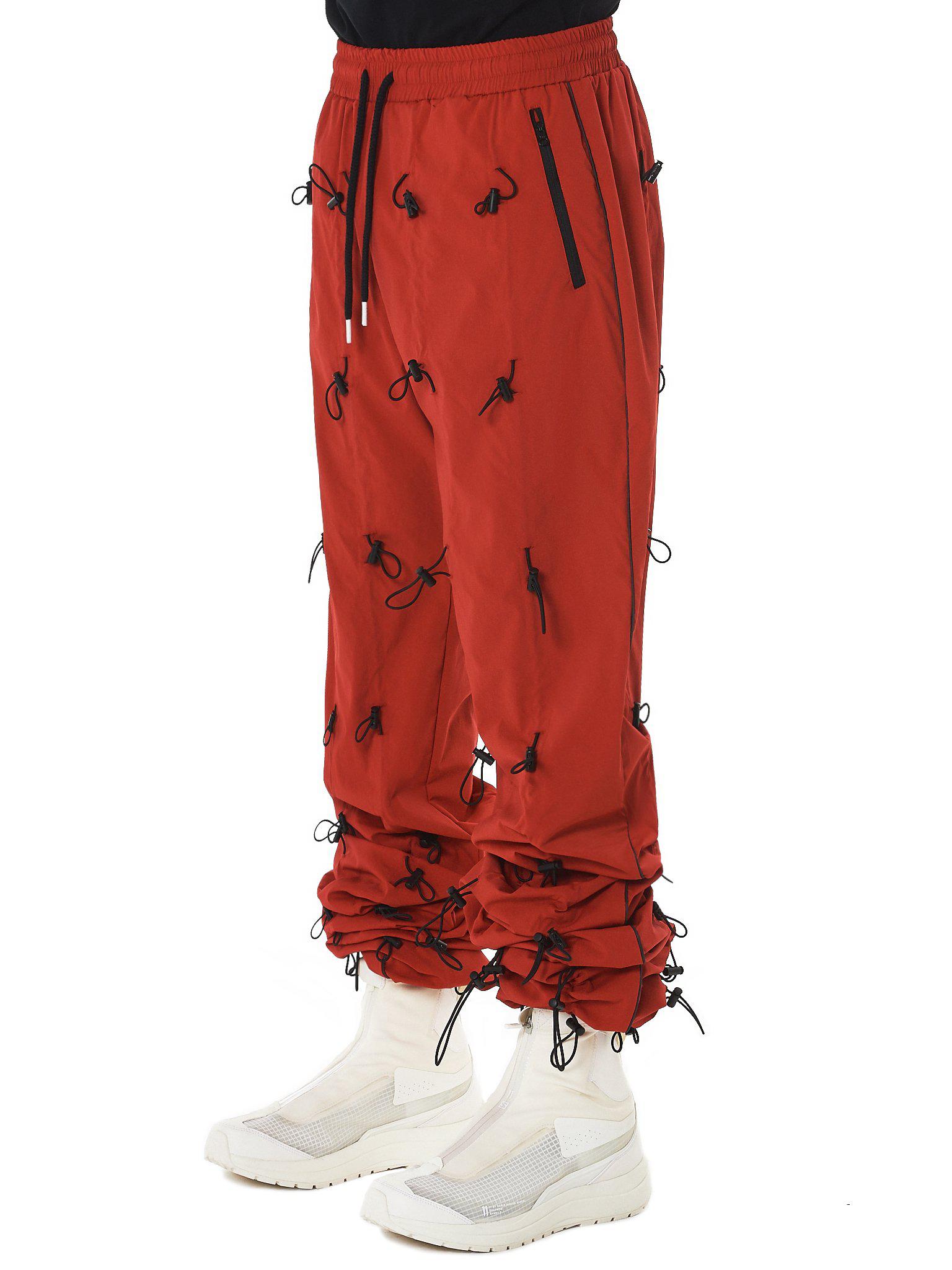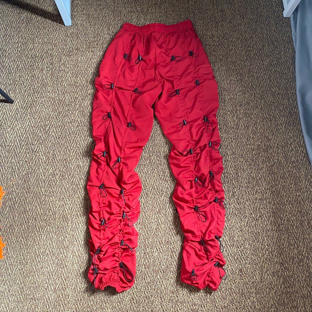 red bungee pants