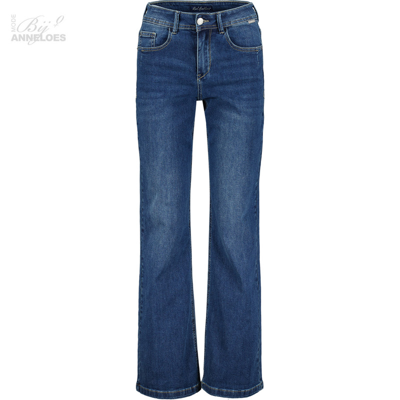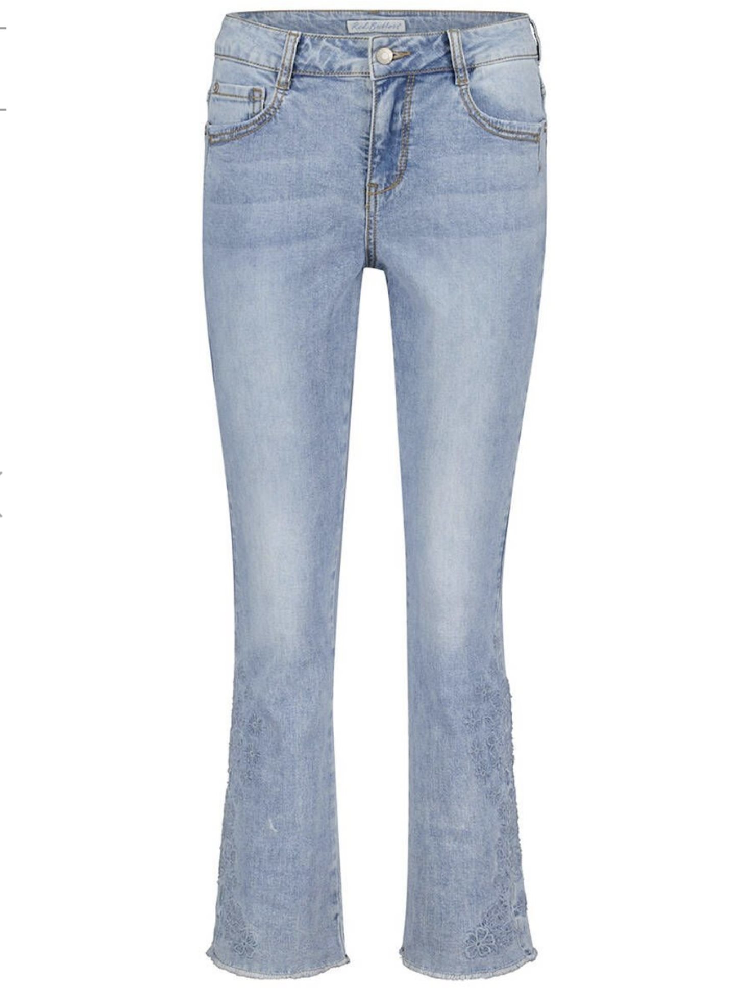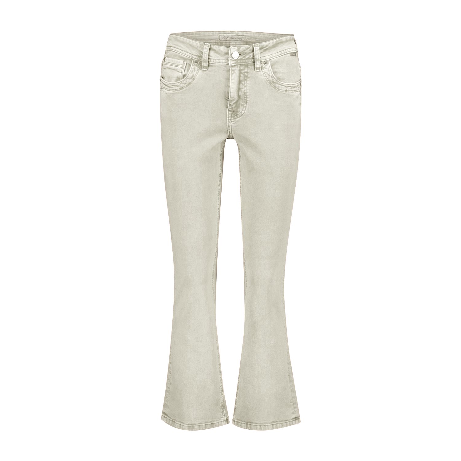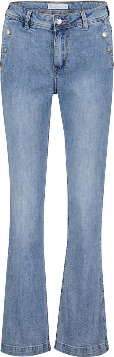 red button flared jeans