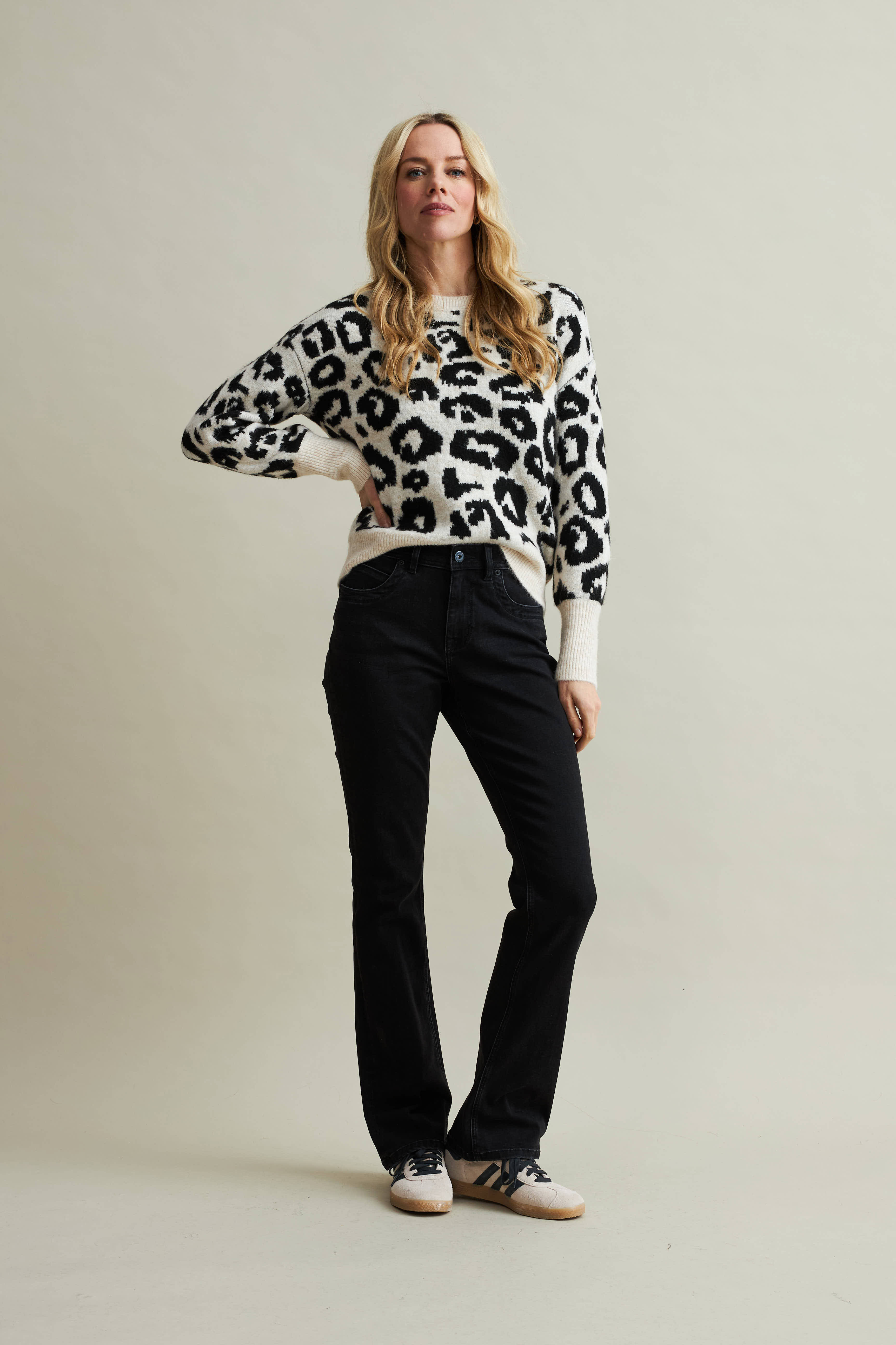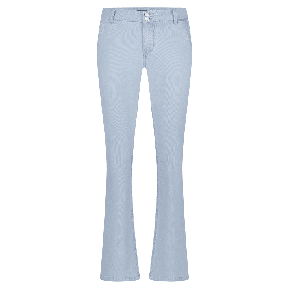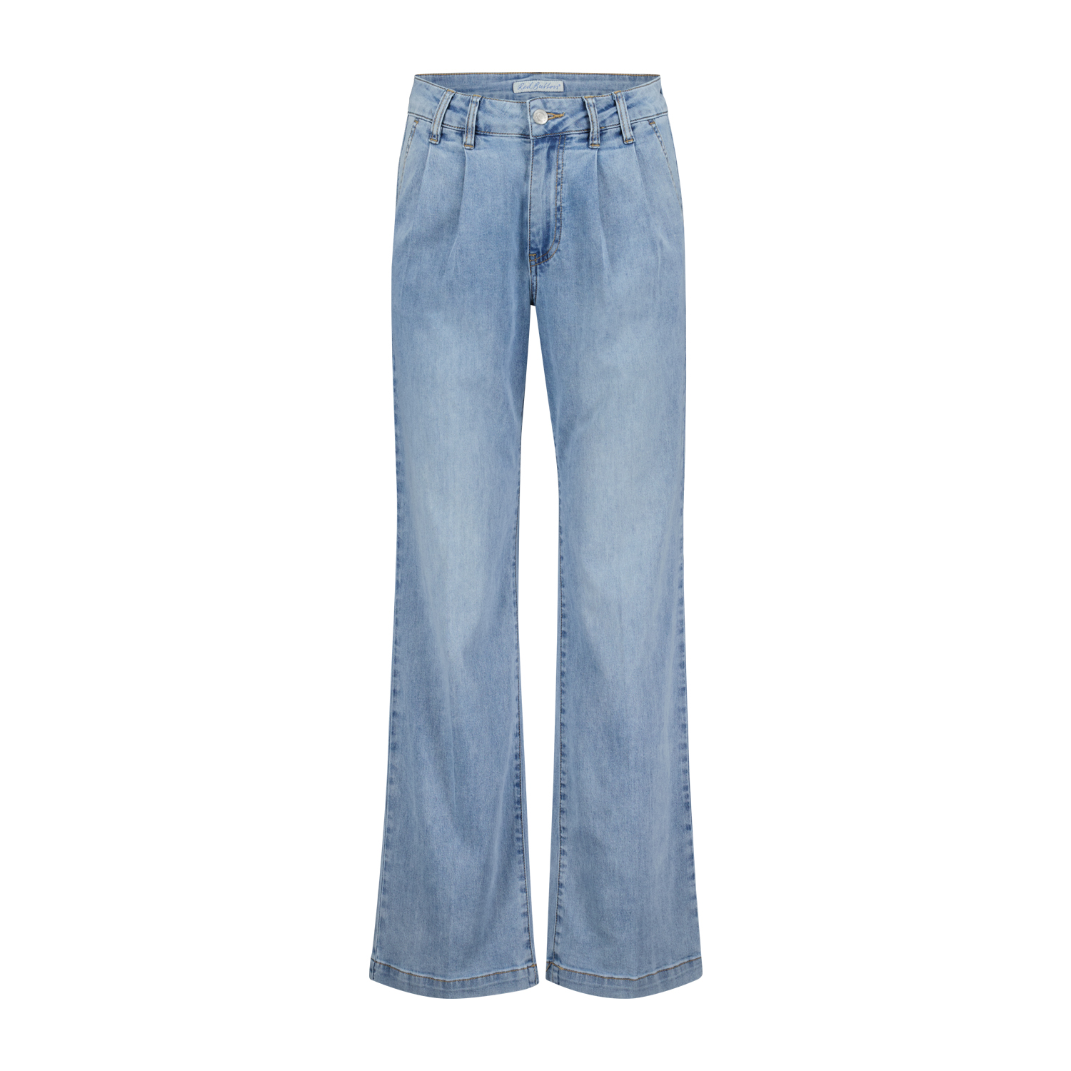 red button flared jeans