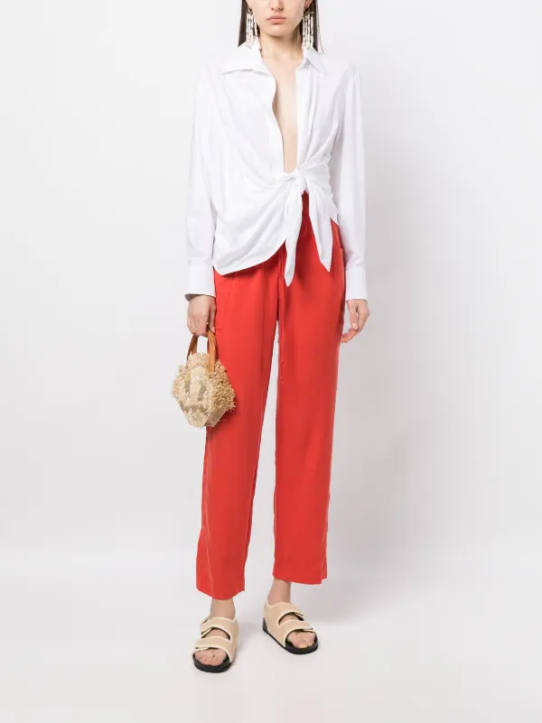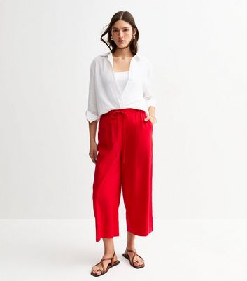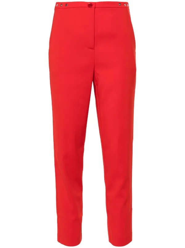 red cropped trousers
