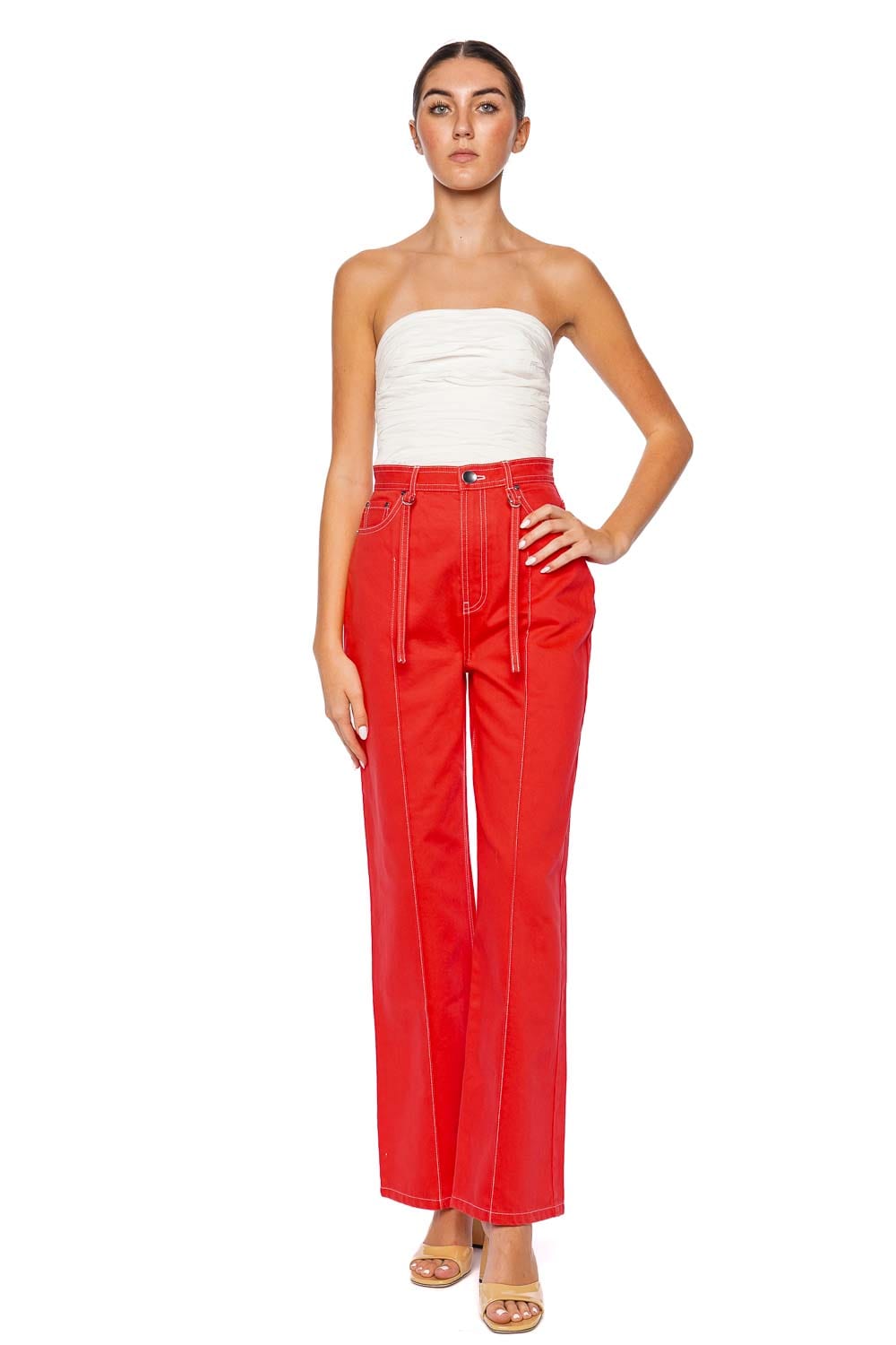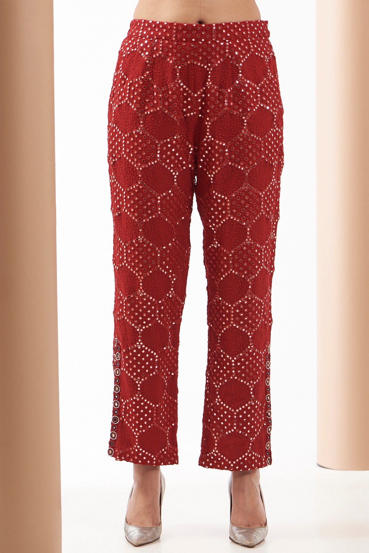 red designer pants