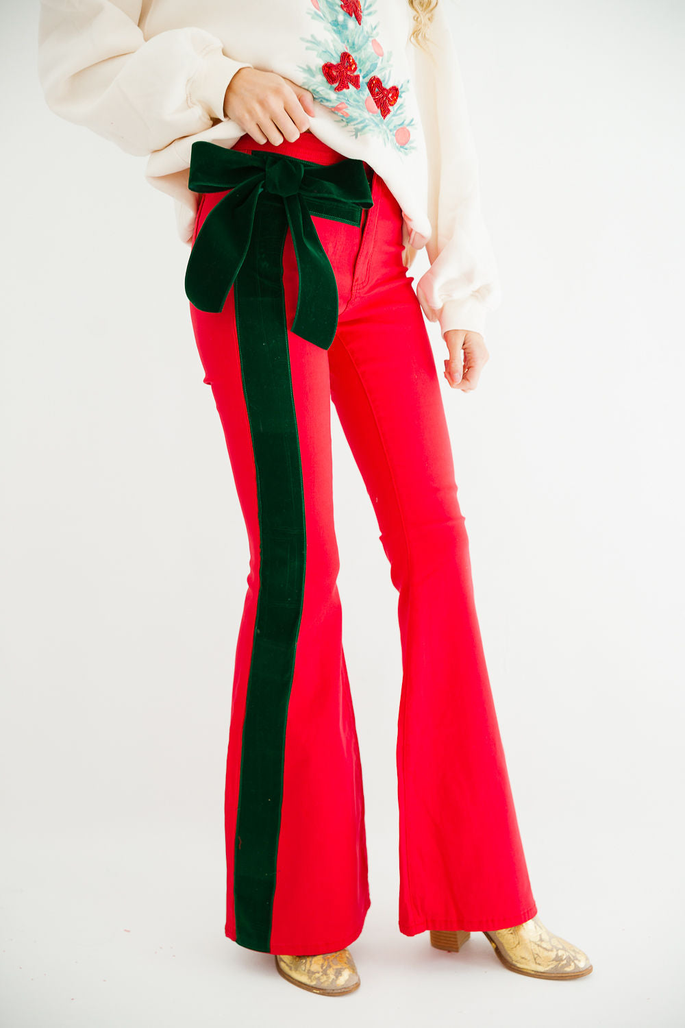 red flare leg pants