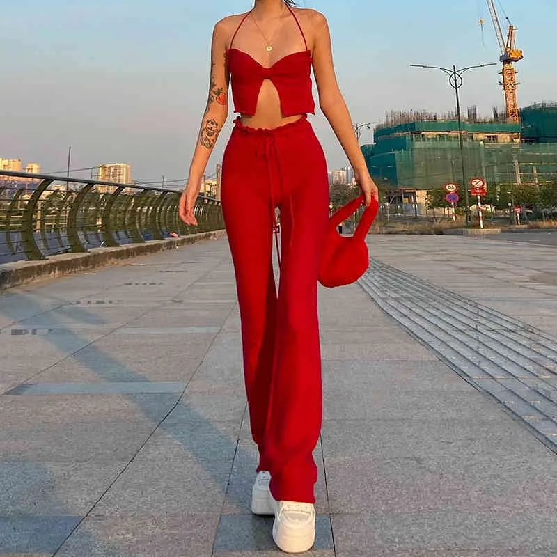 red flare trousers