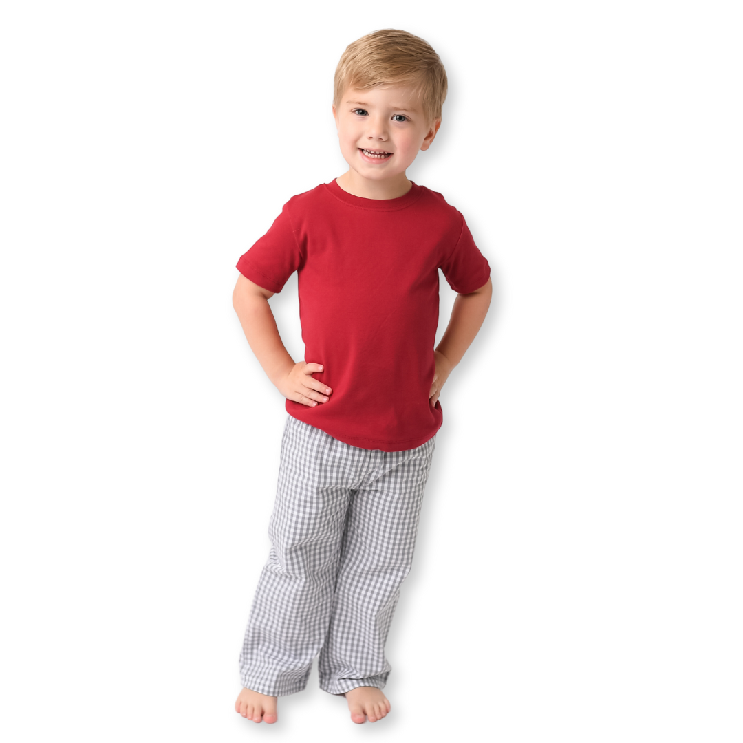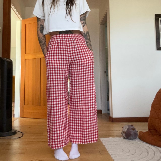 red gingham pants