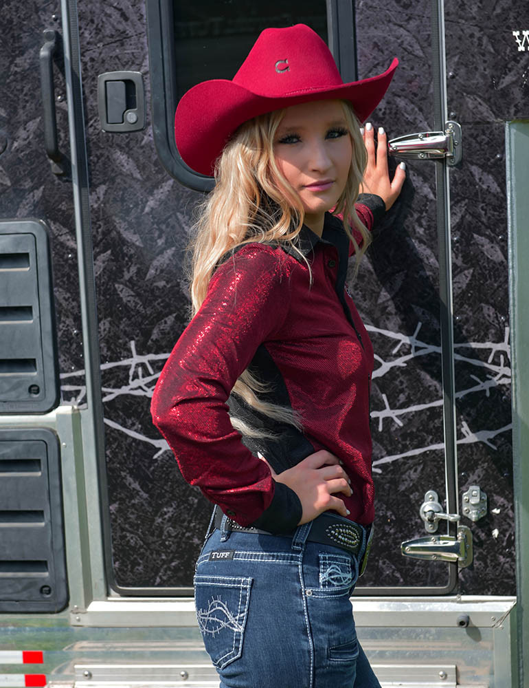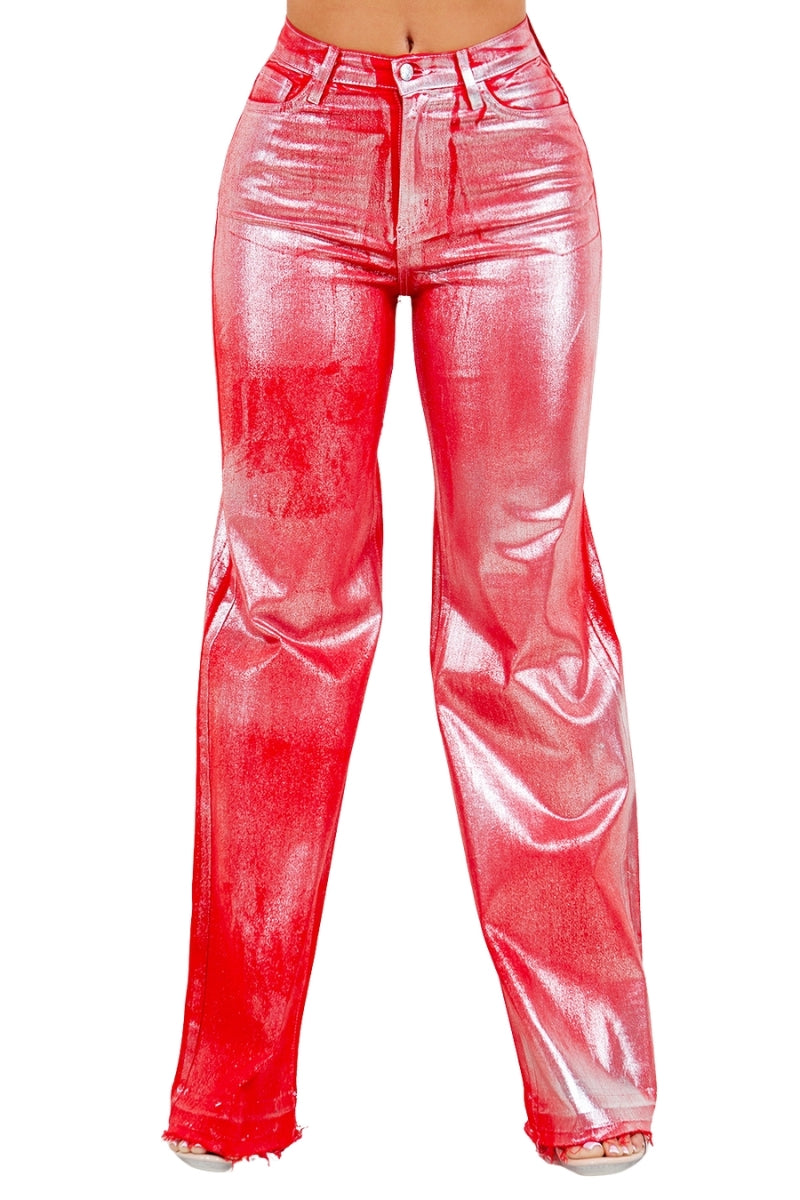 red metallic jeans
