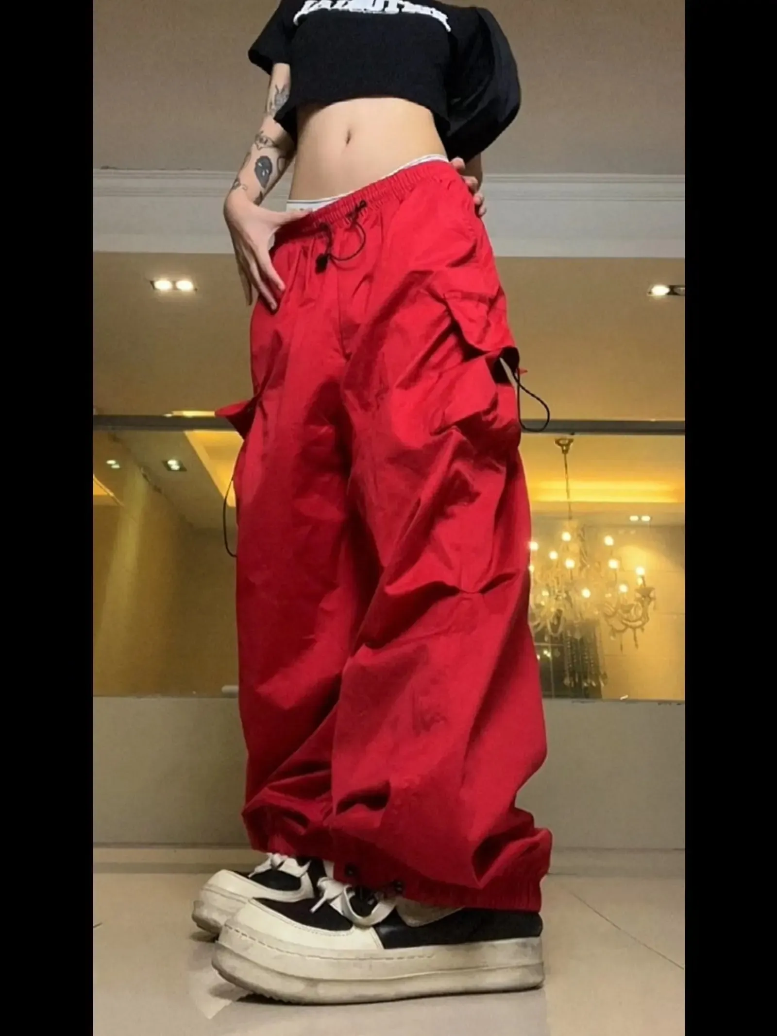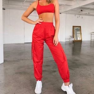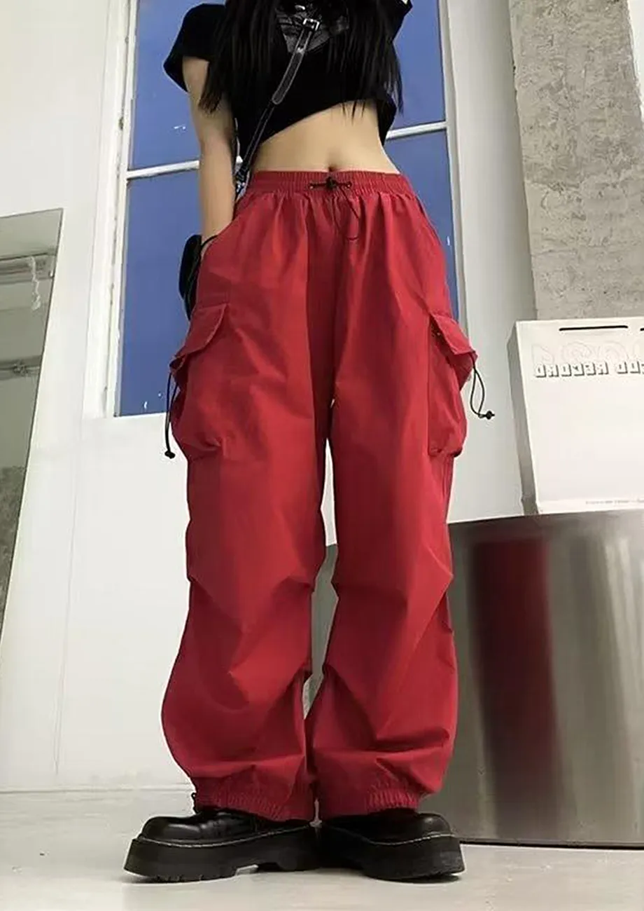 red parachute pants