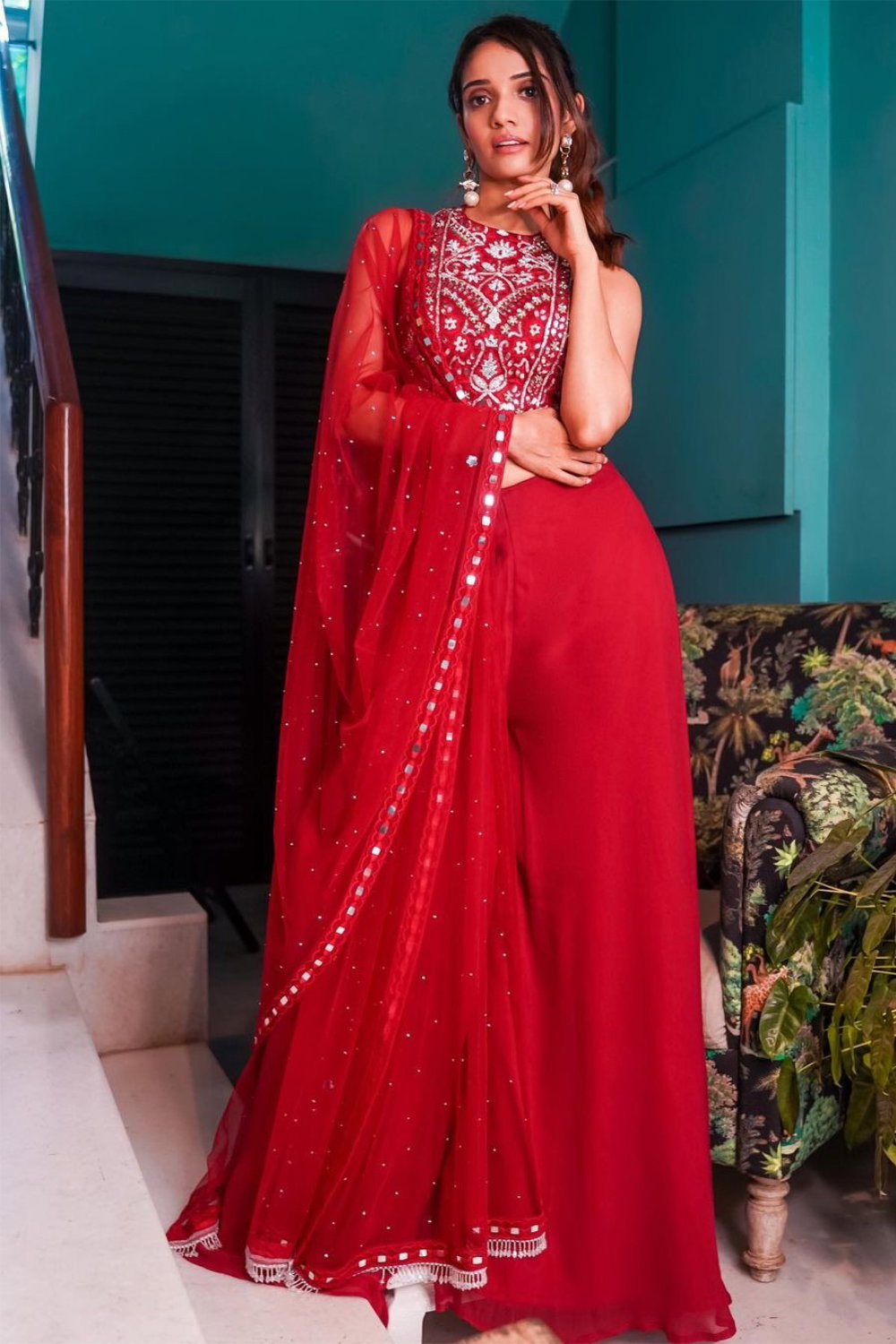 red plazo pant