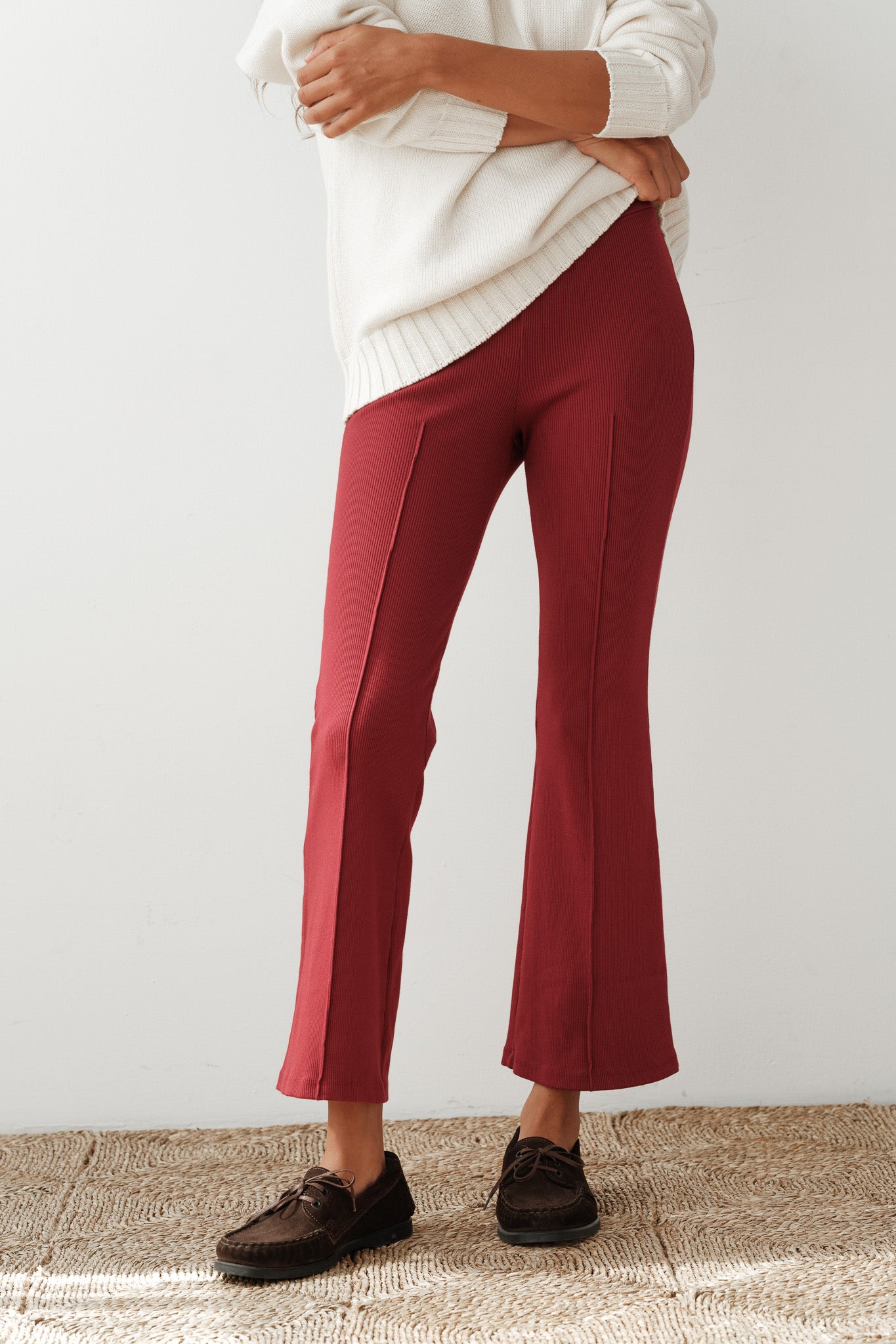 red ribbed pants