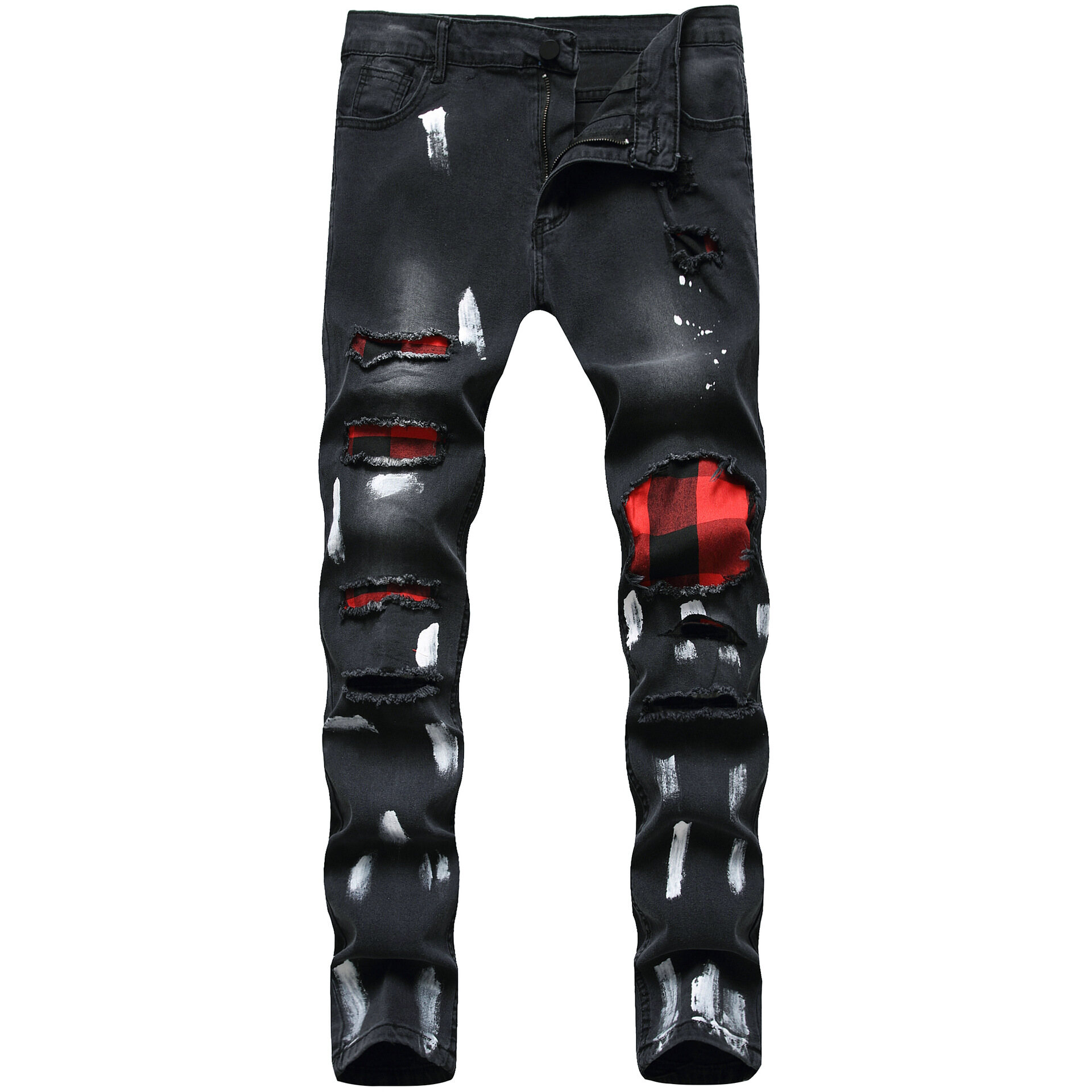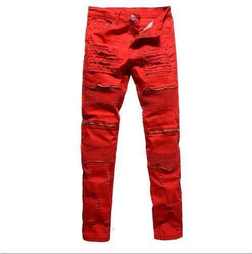 red ripped jeans