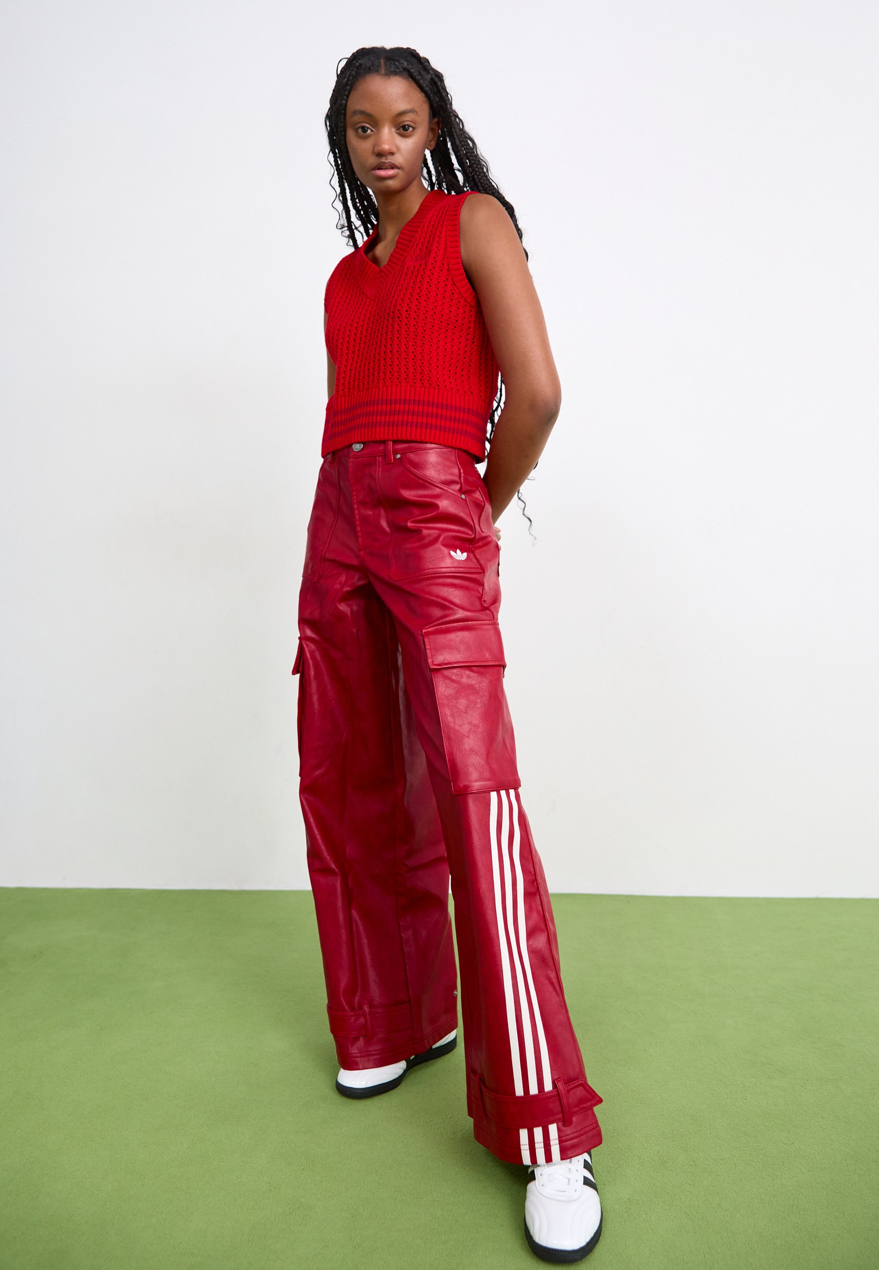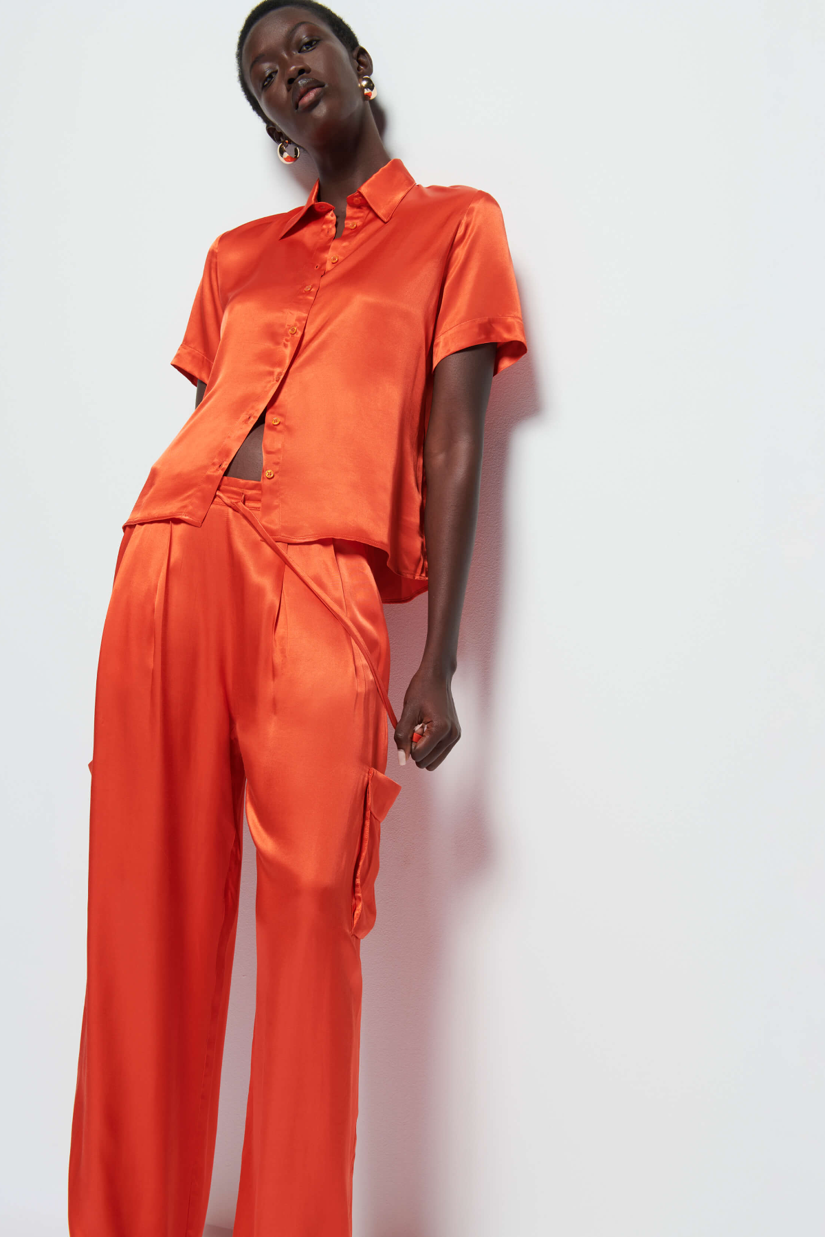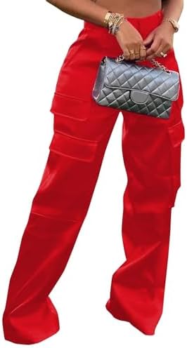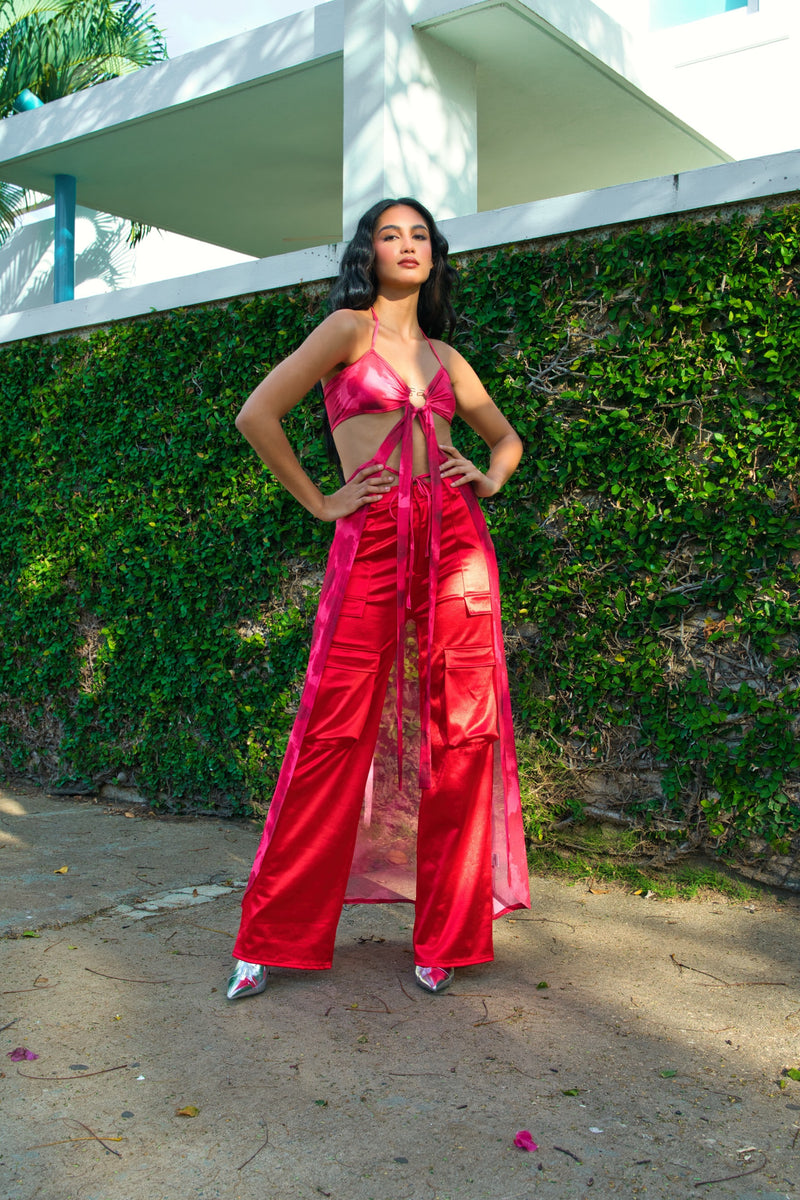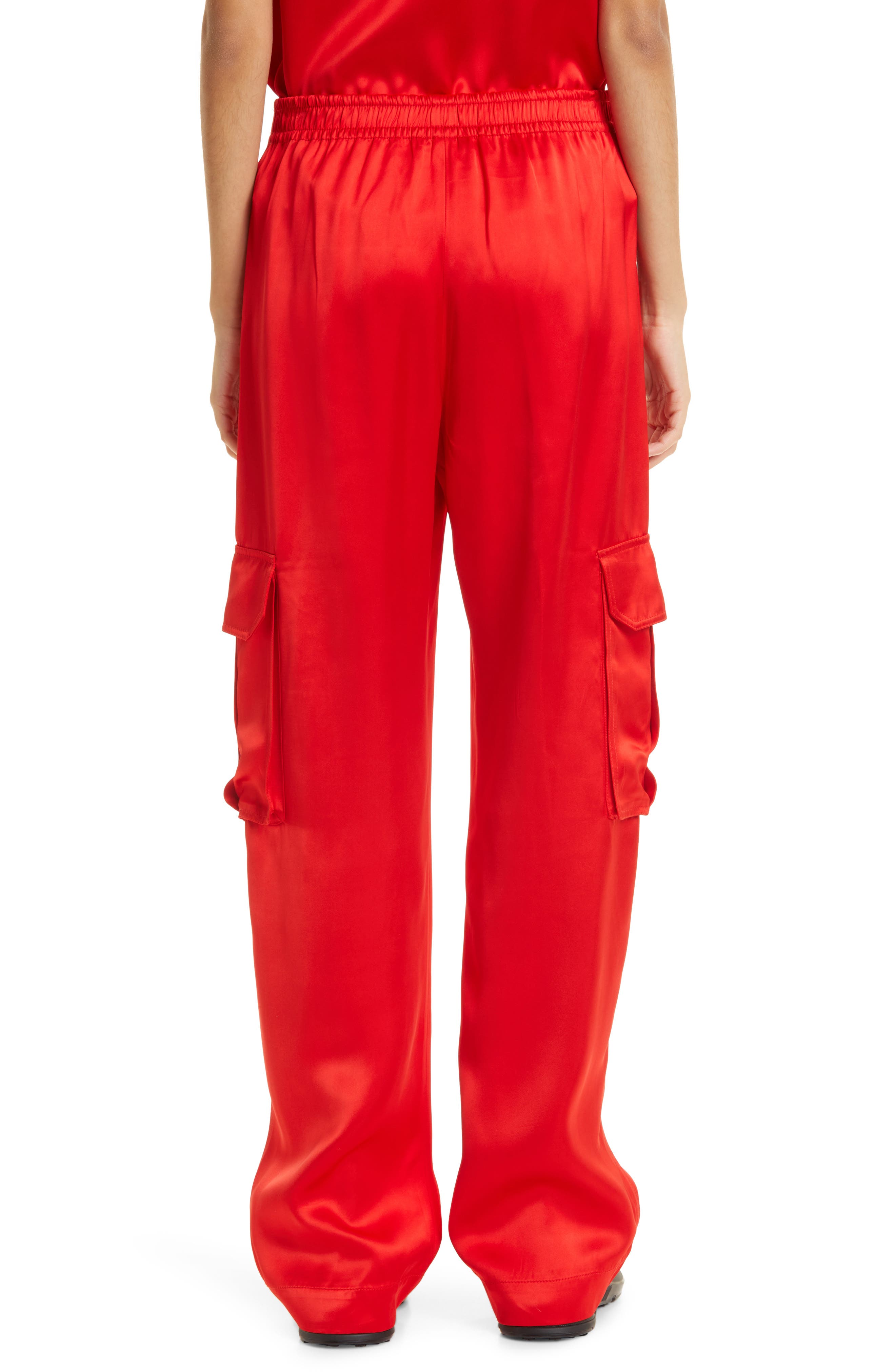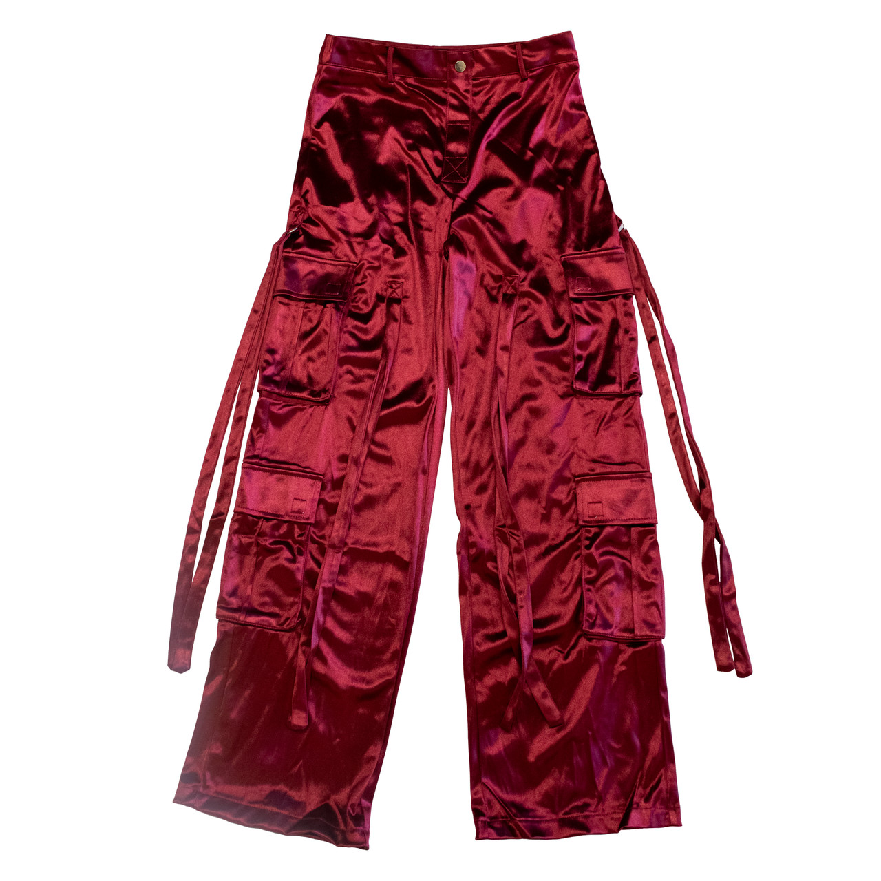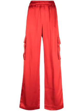 red satin cargo pants
