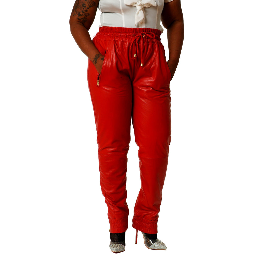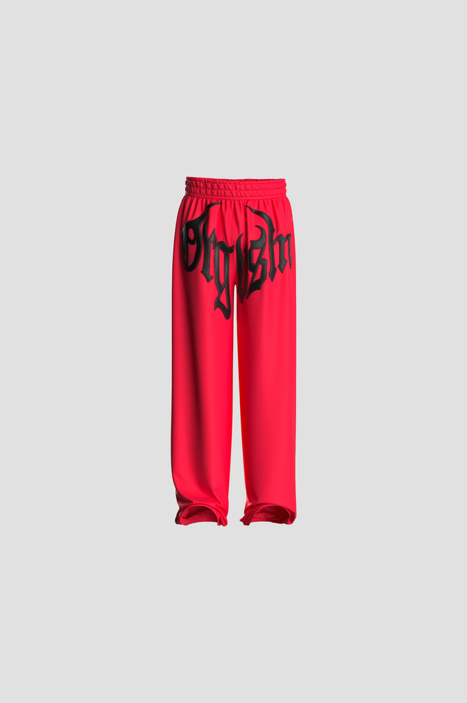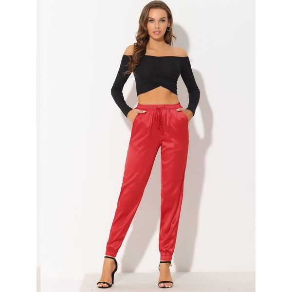 red silk joggers