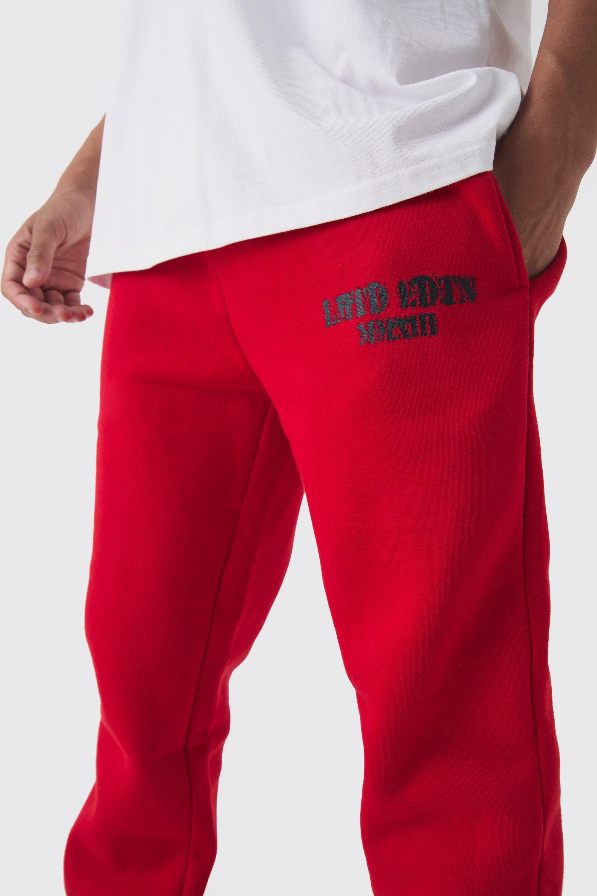 red stacked sweats