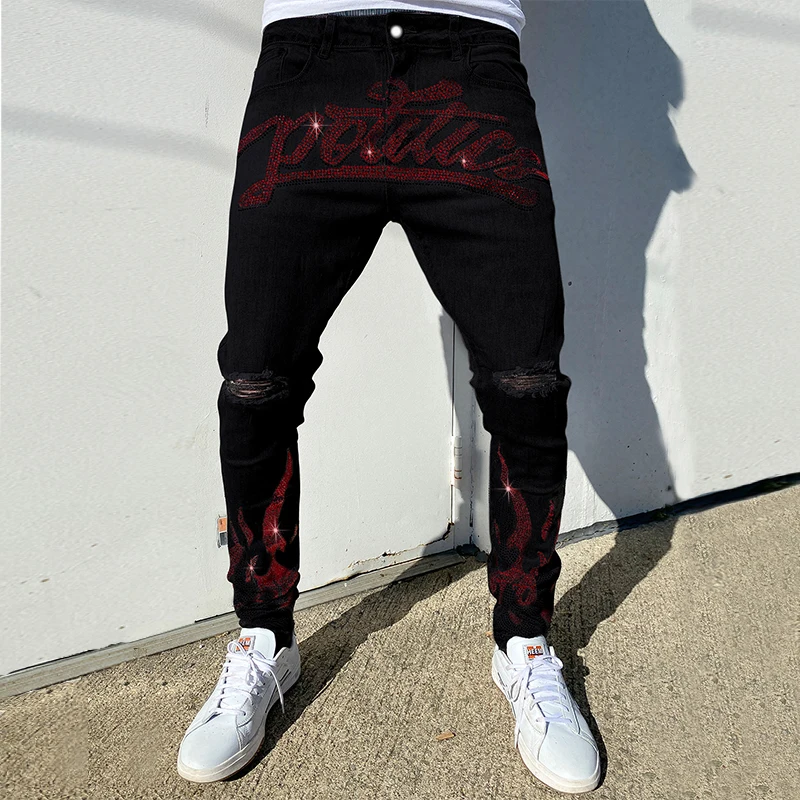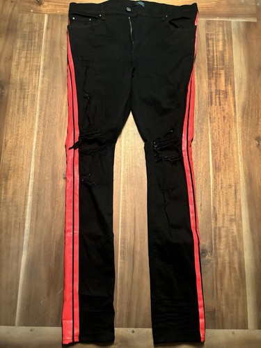 red stripe black jeans