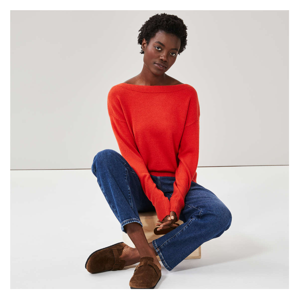 red sweater and jeans