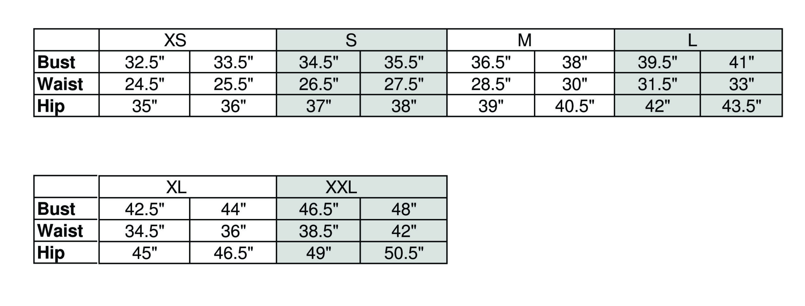 revice size chart