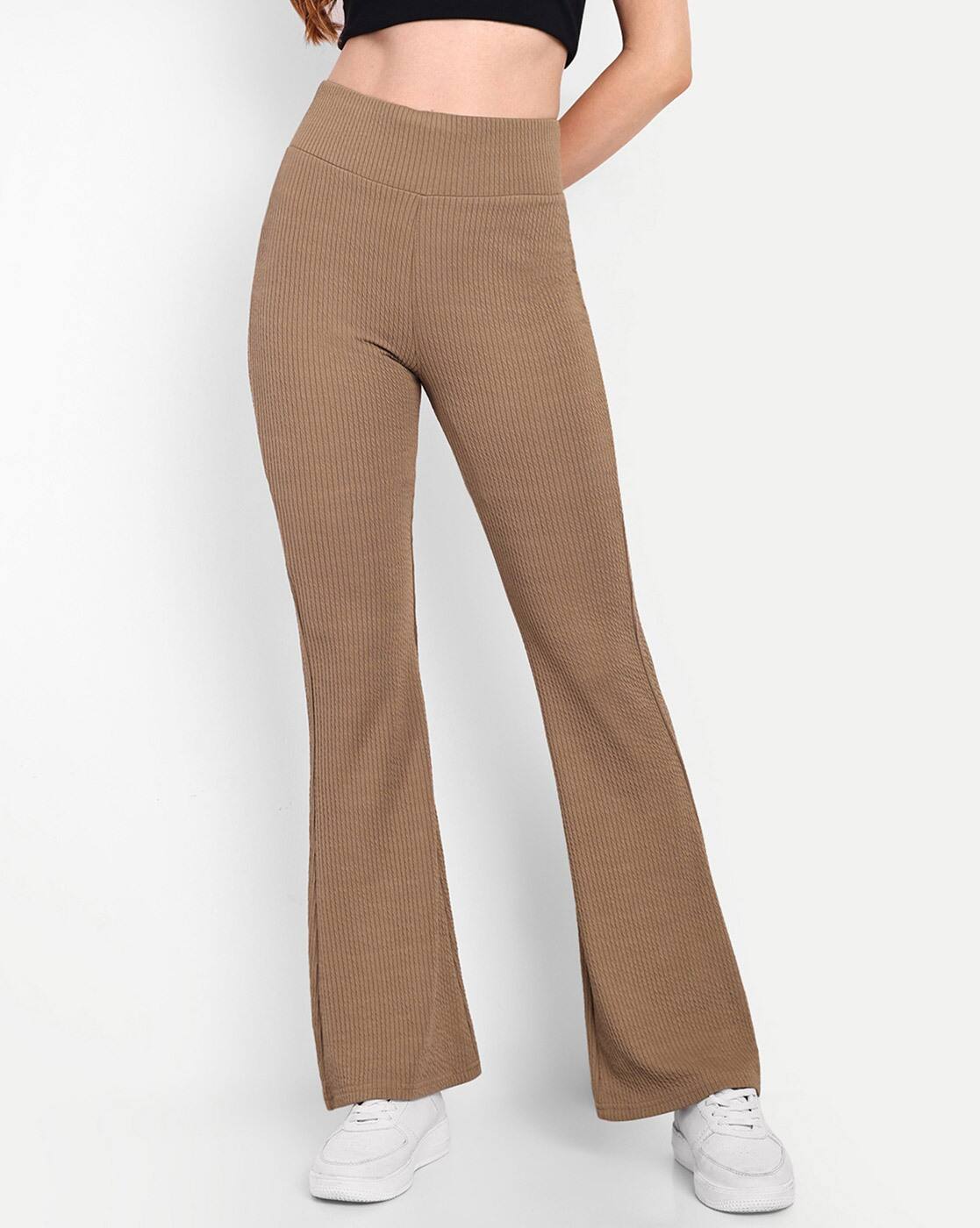 ribbed flared pants beige