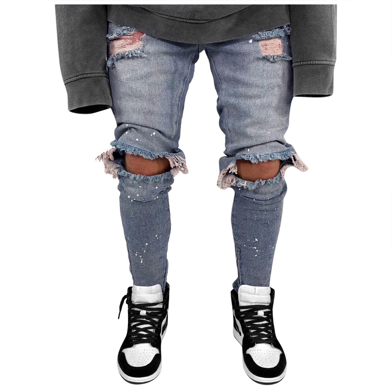 ripped striped jeans