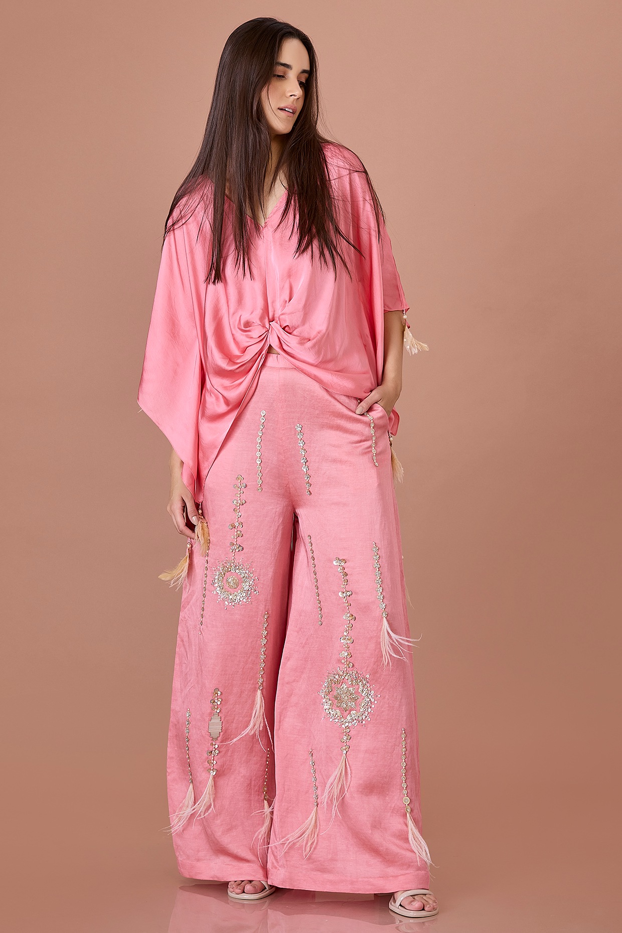 rose gold satin pants