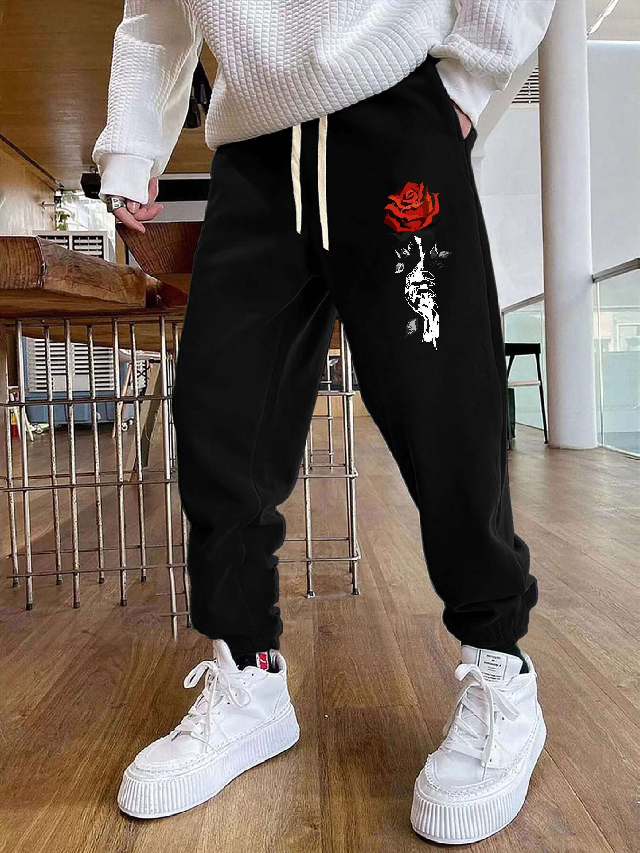 rose print joggers