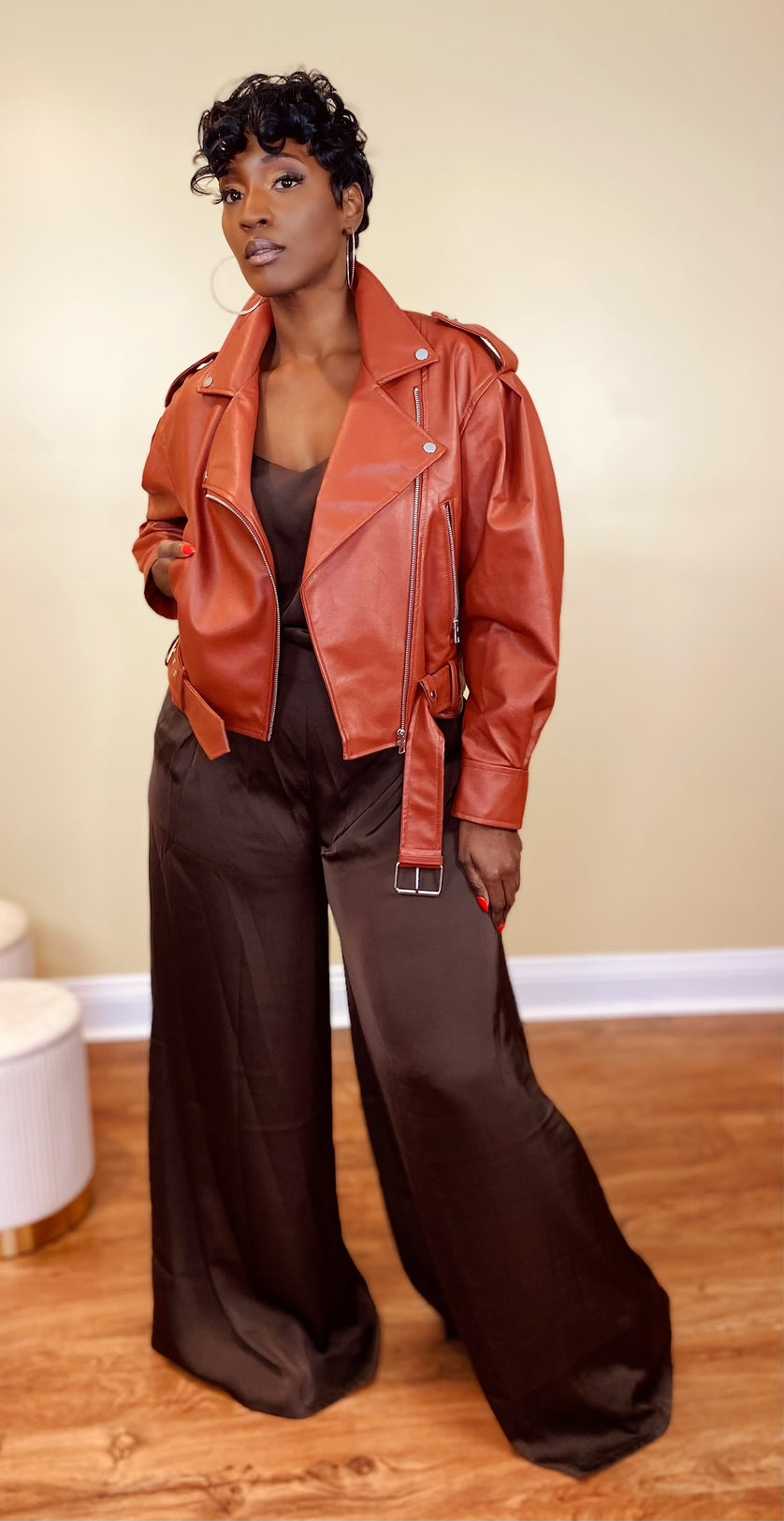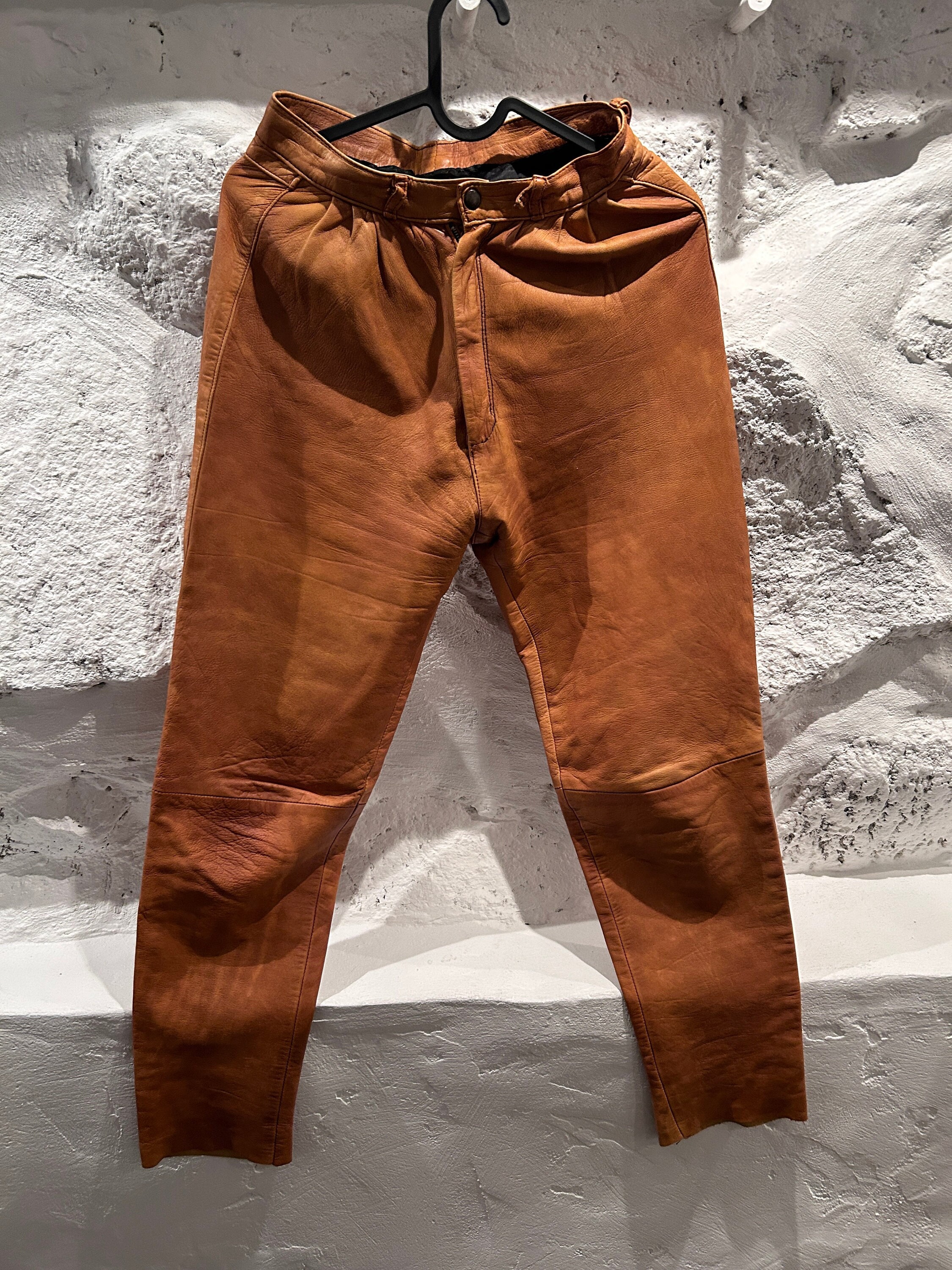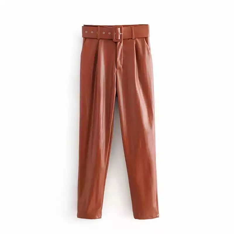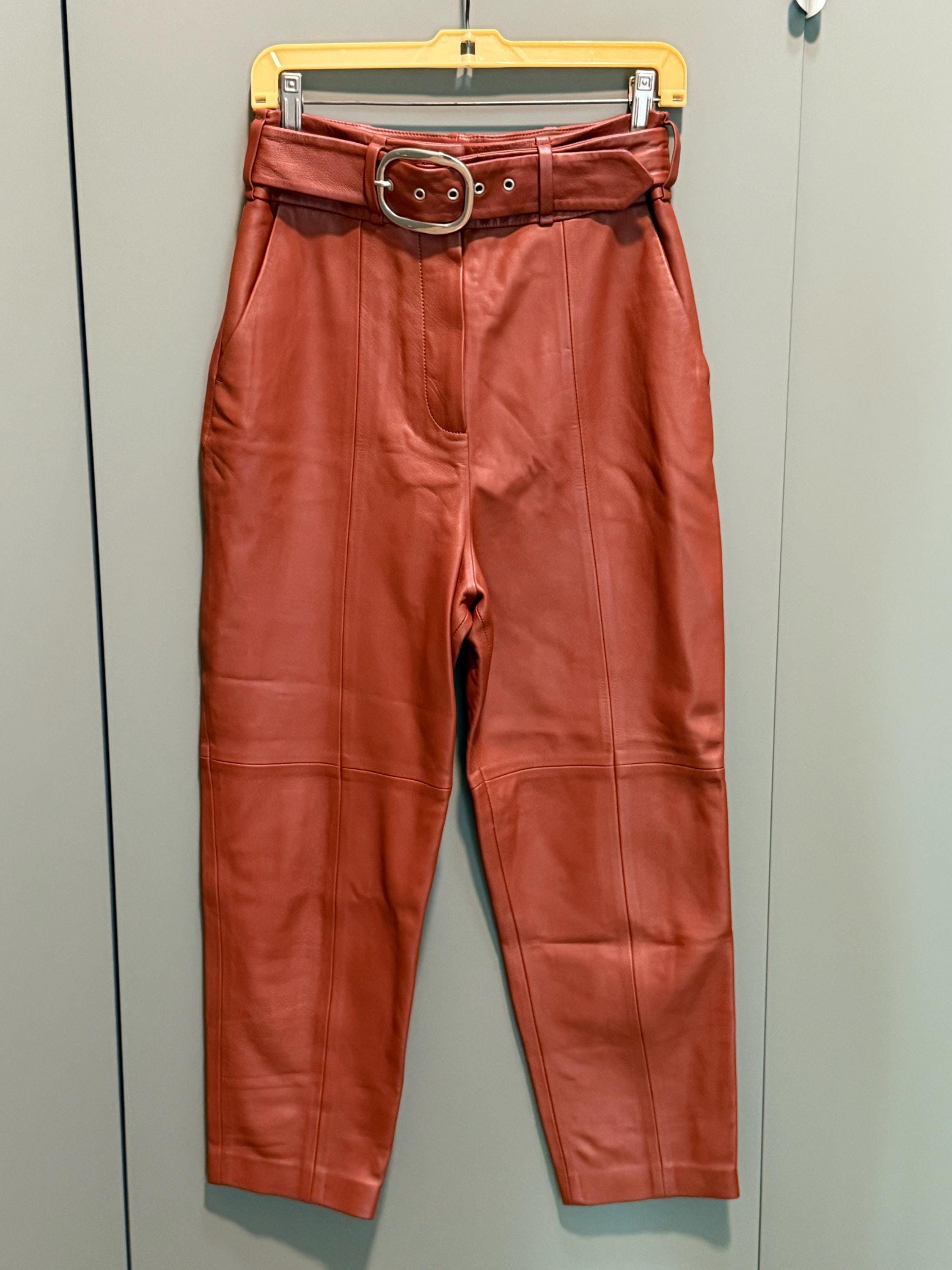 rust leather pants