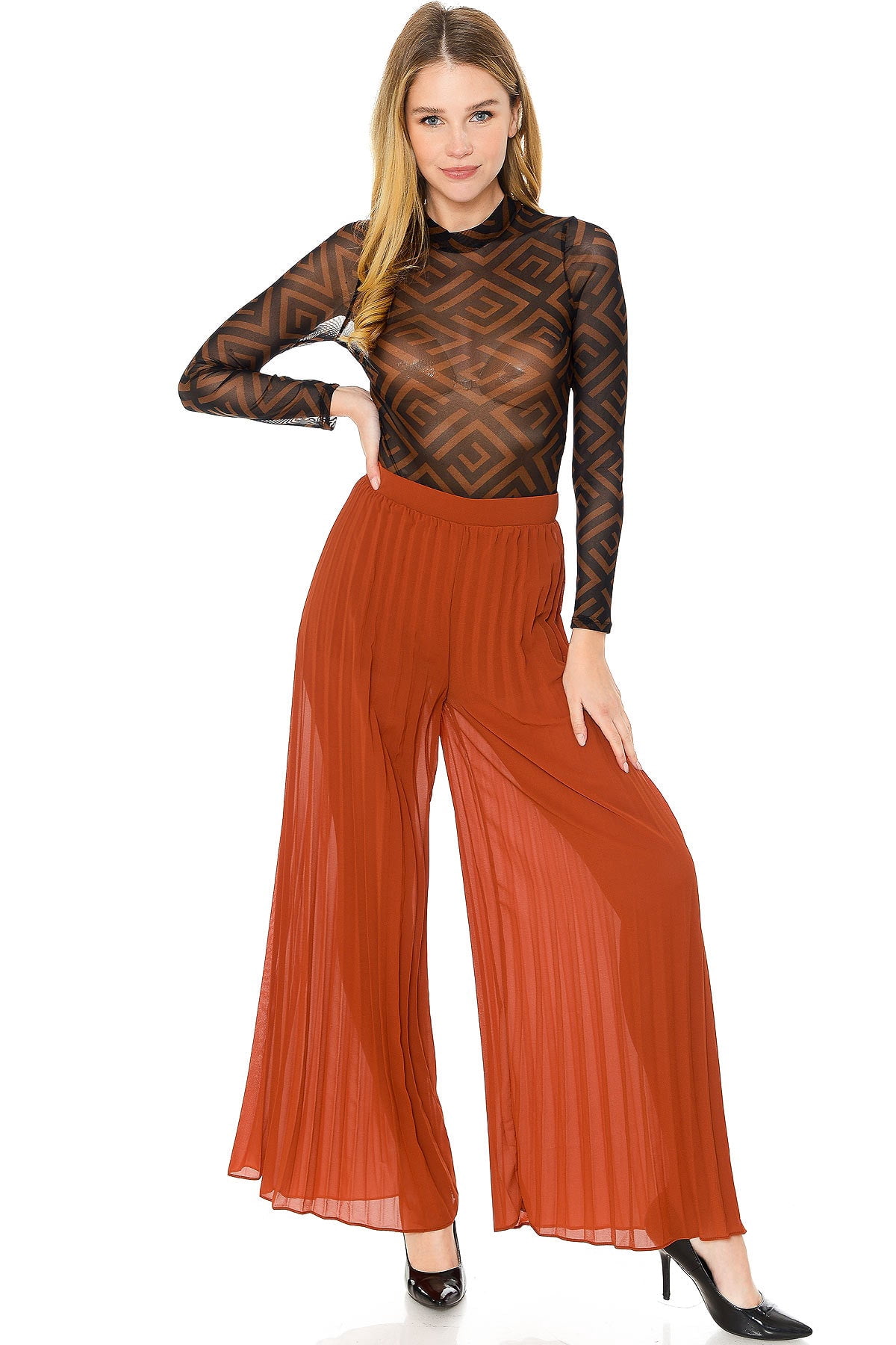 rust wide leg pants