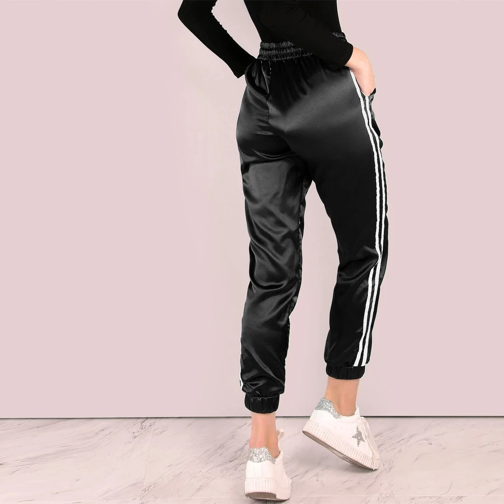 satin side stripe joggers
