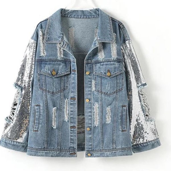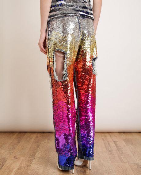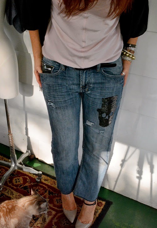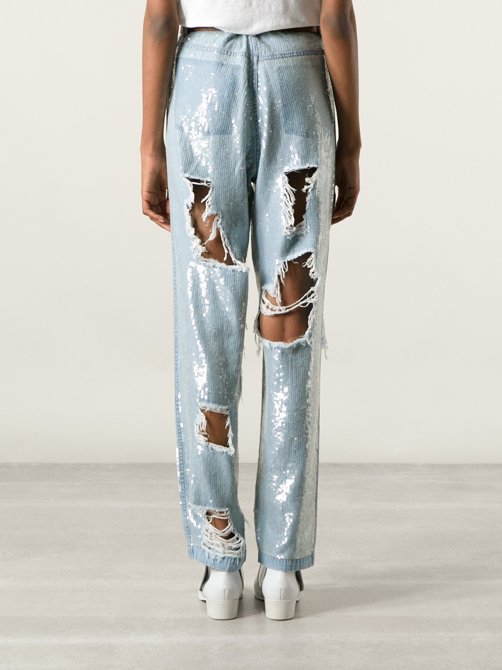 sequin distressed jeans