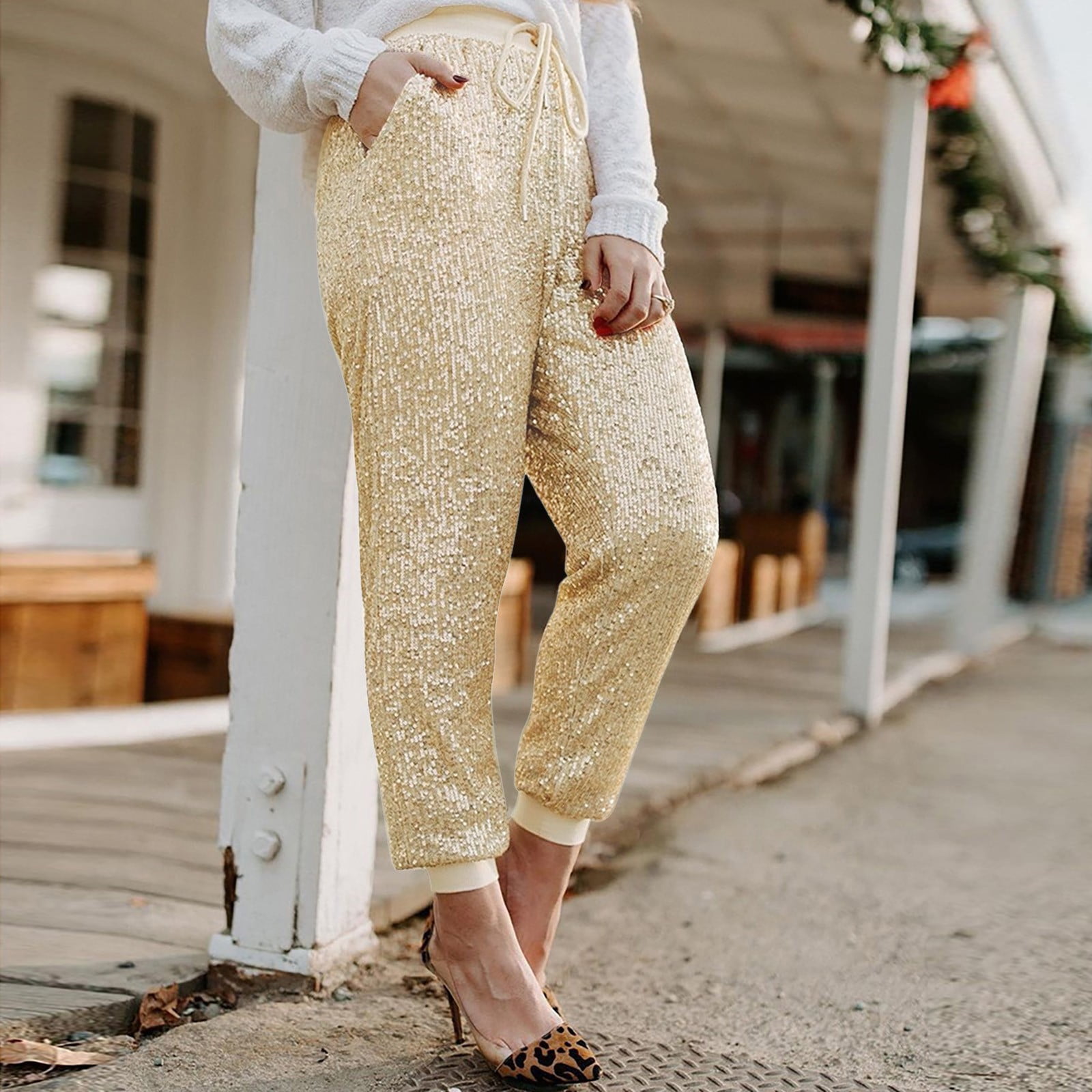 sequin jogger pants outfit