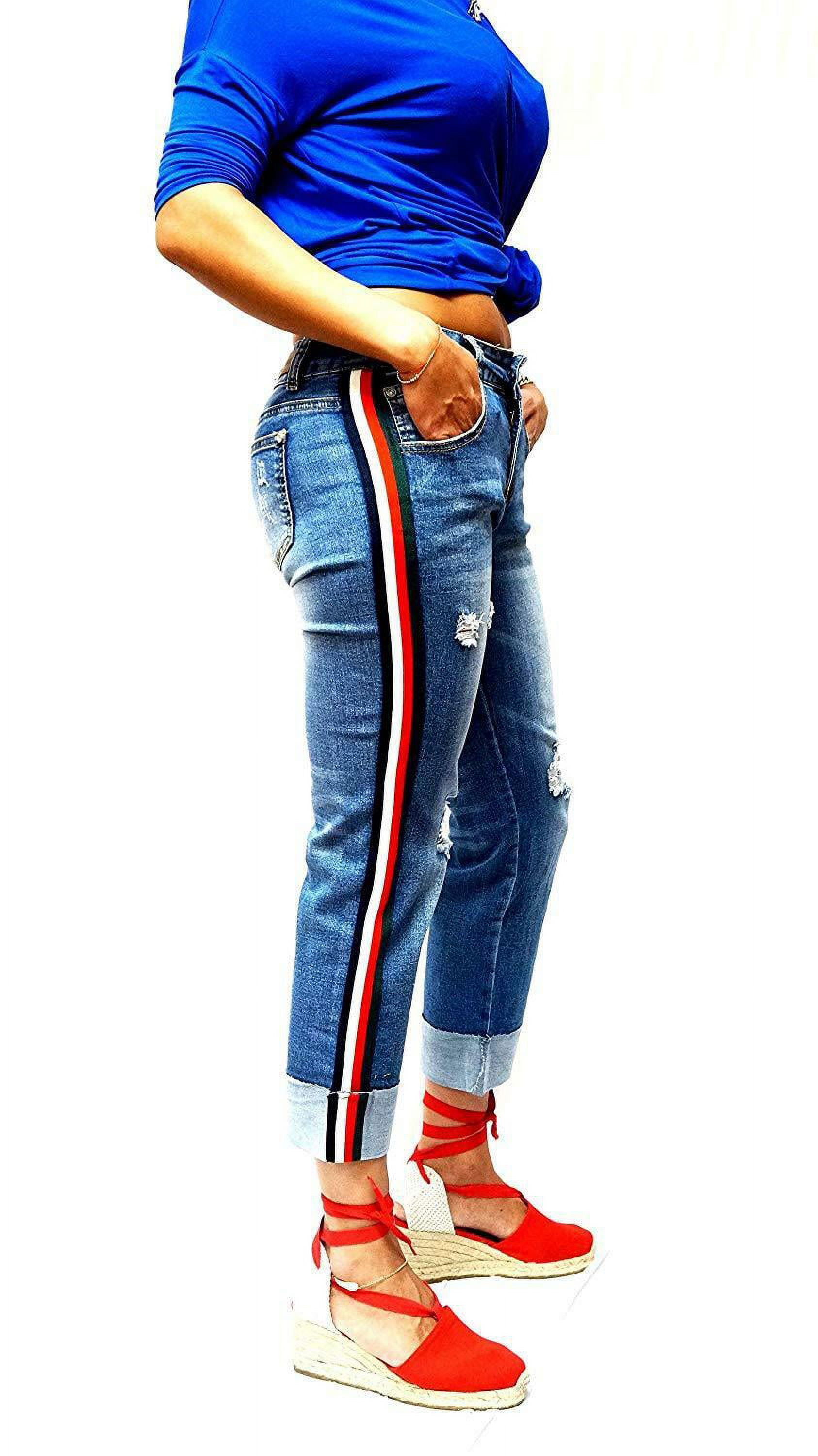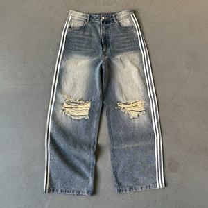 side stripe distressed jeans