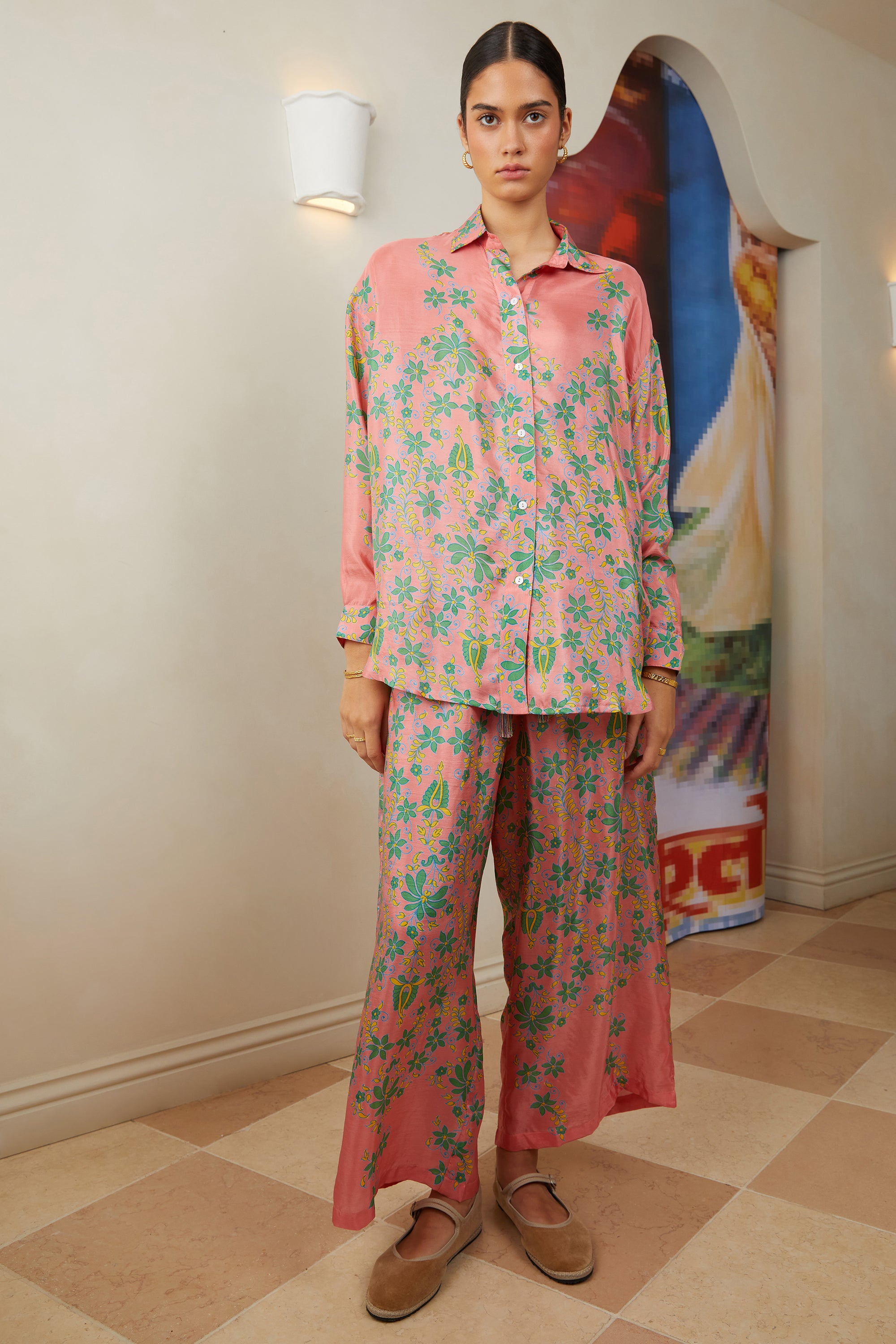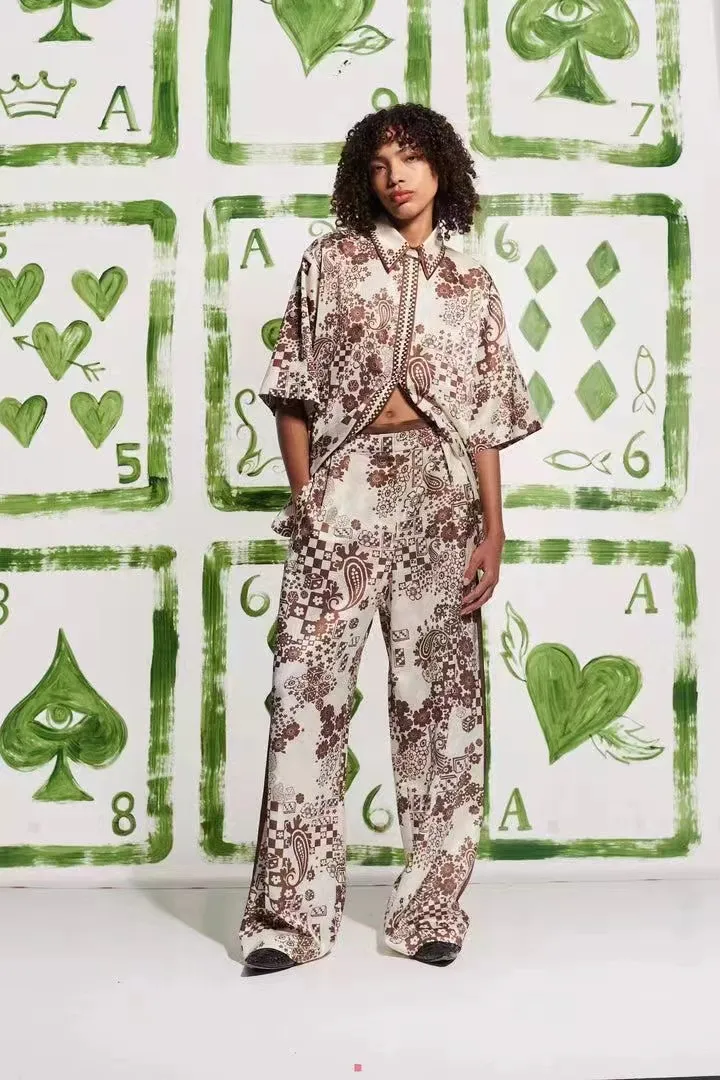 silk print pants