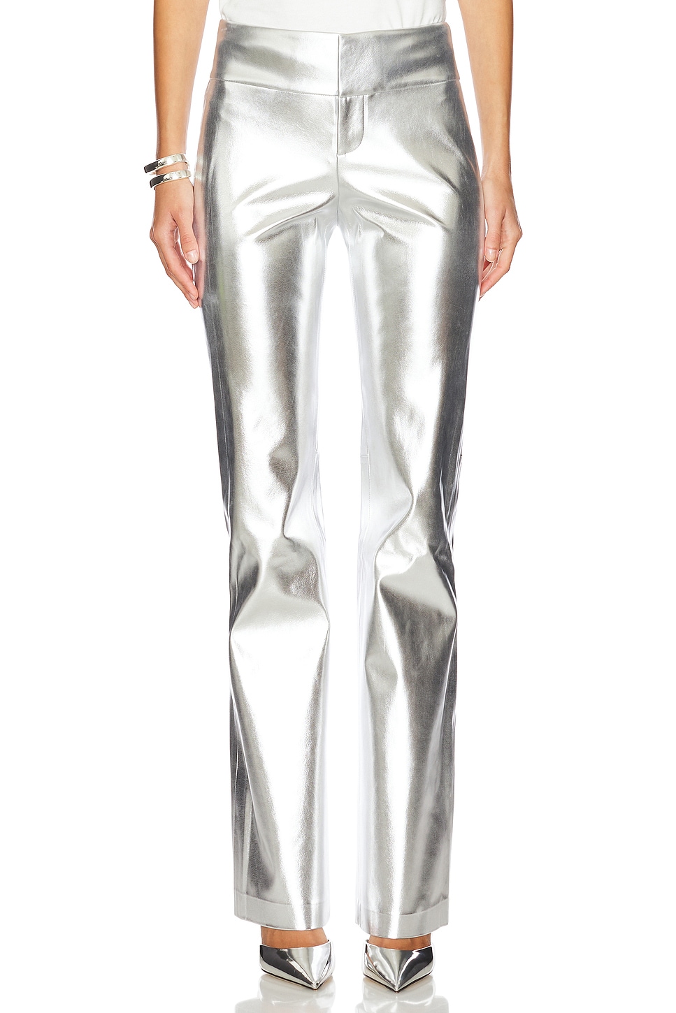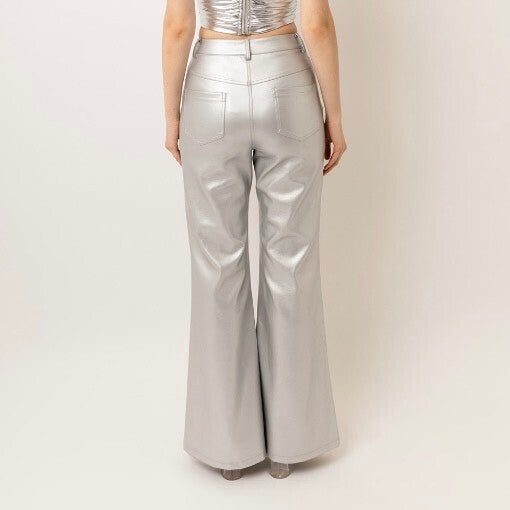 silver faux leather pants