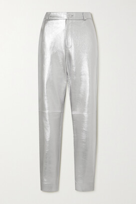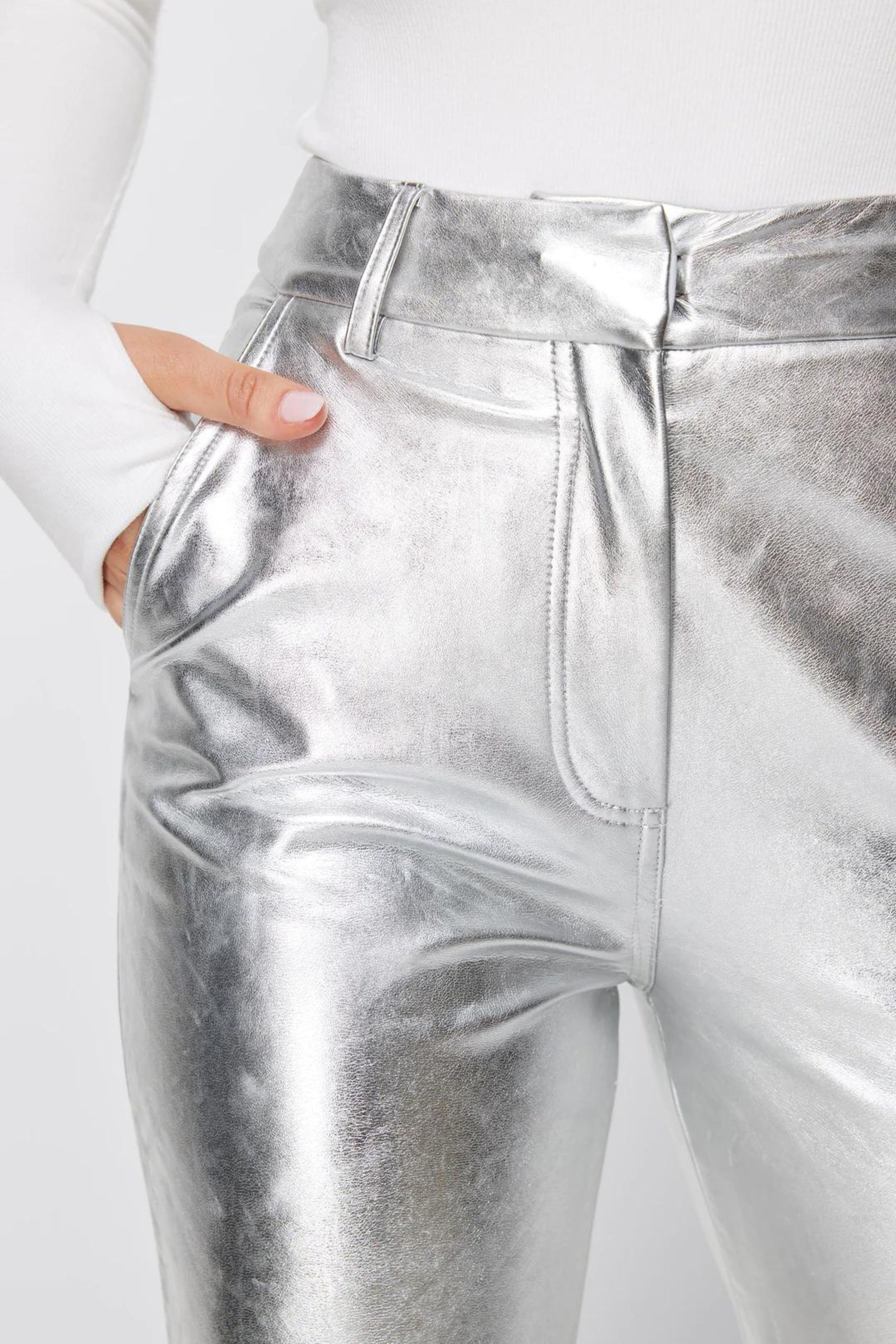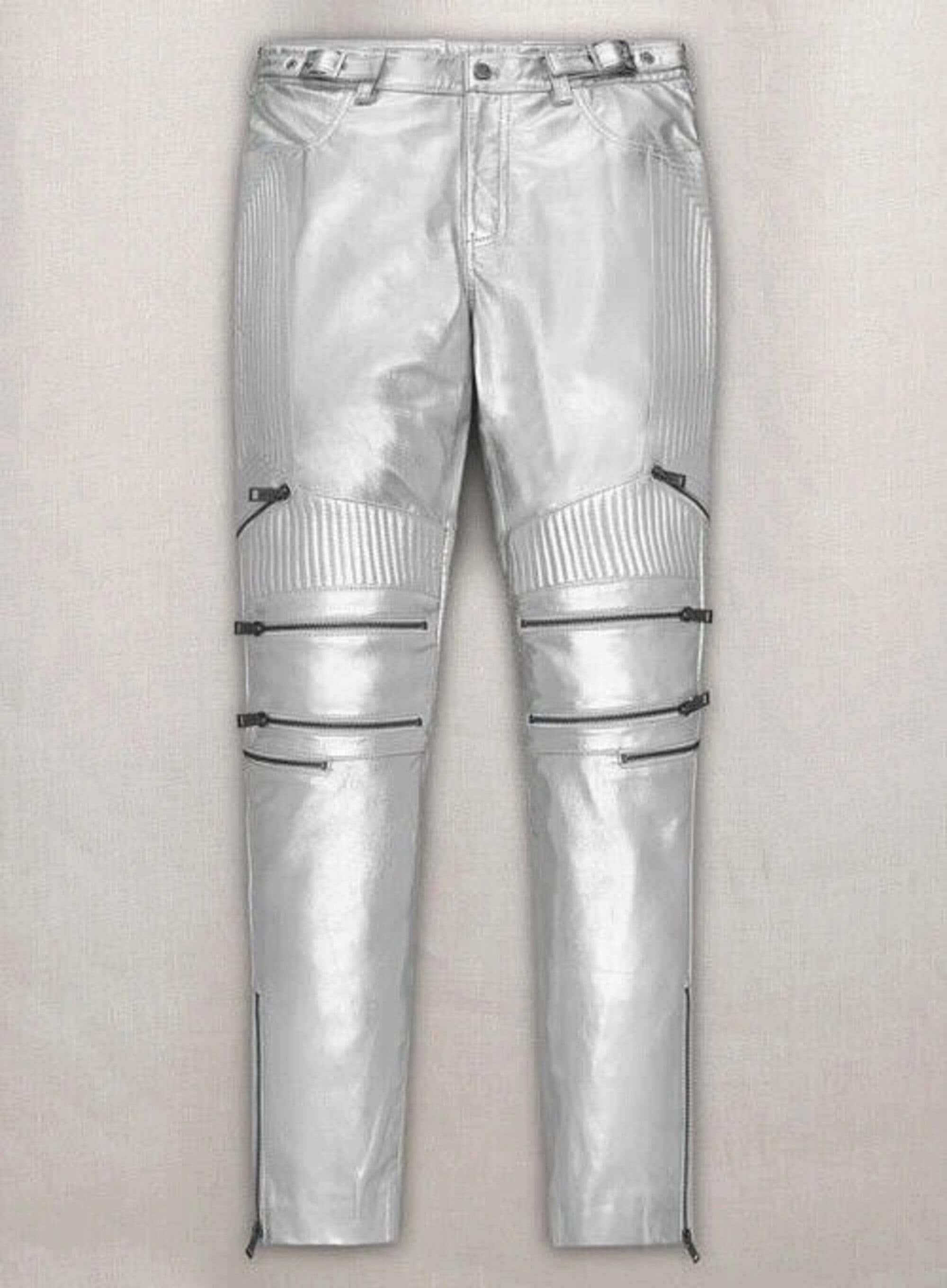 silver leather jeans