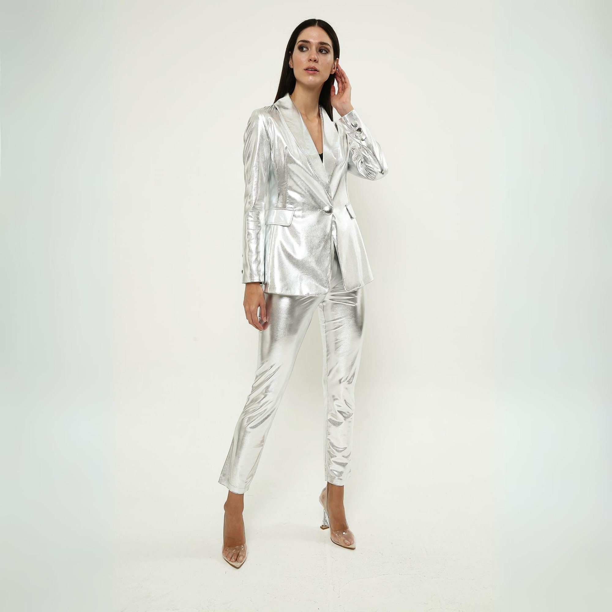 silver pant coat