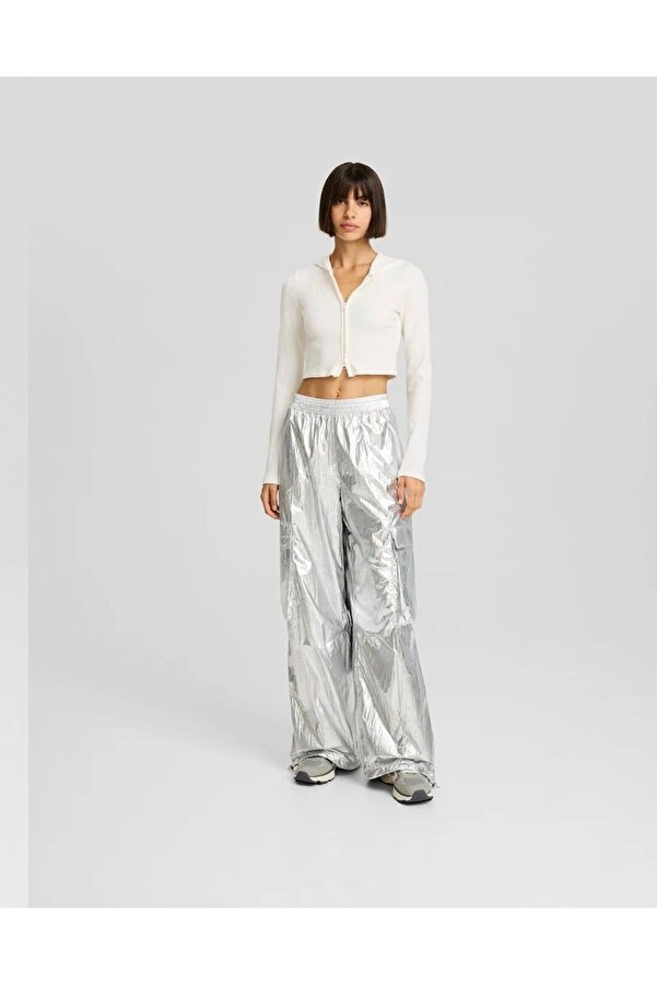 silver parachute pants