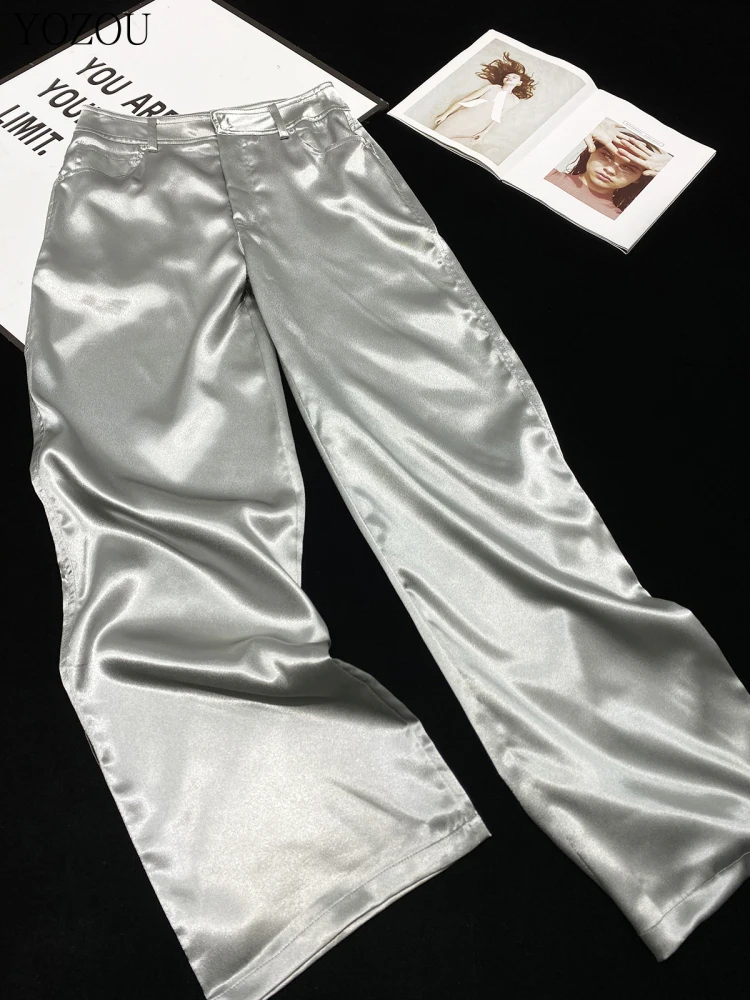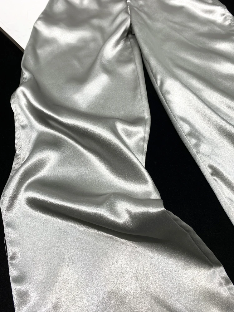 silver shiny pants