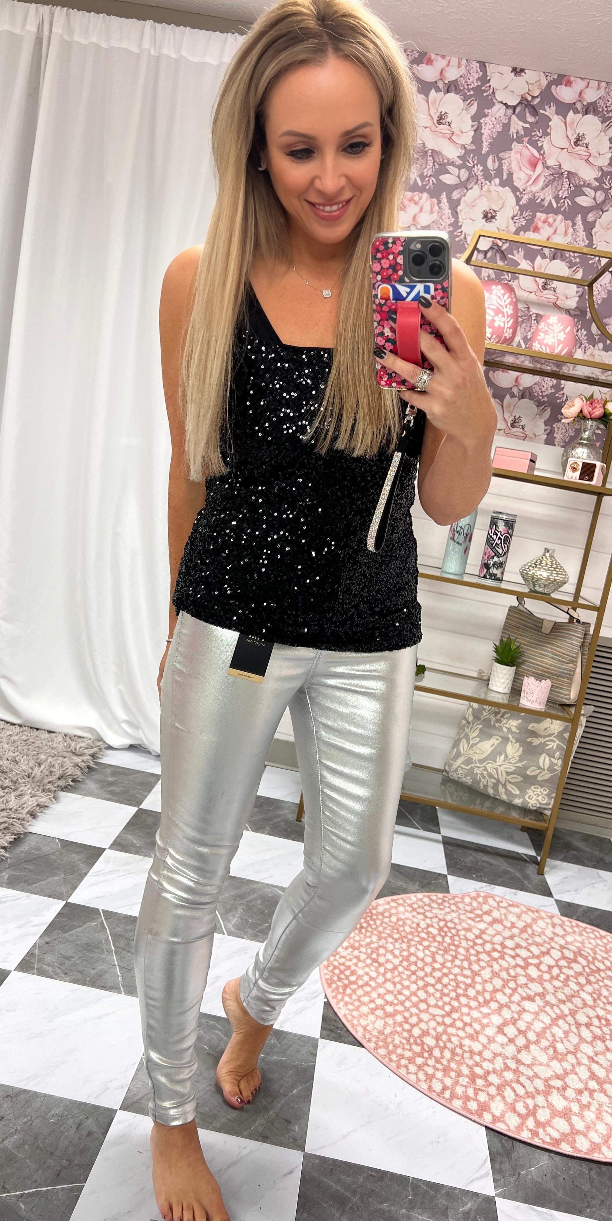 silver skinny pants