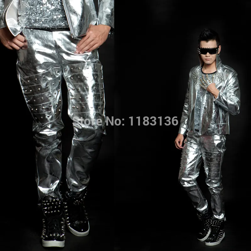 silver trousers mens