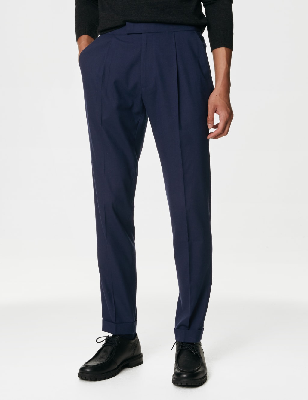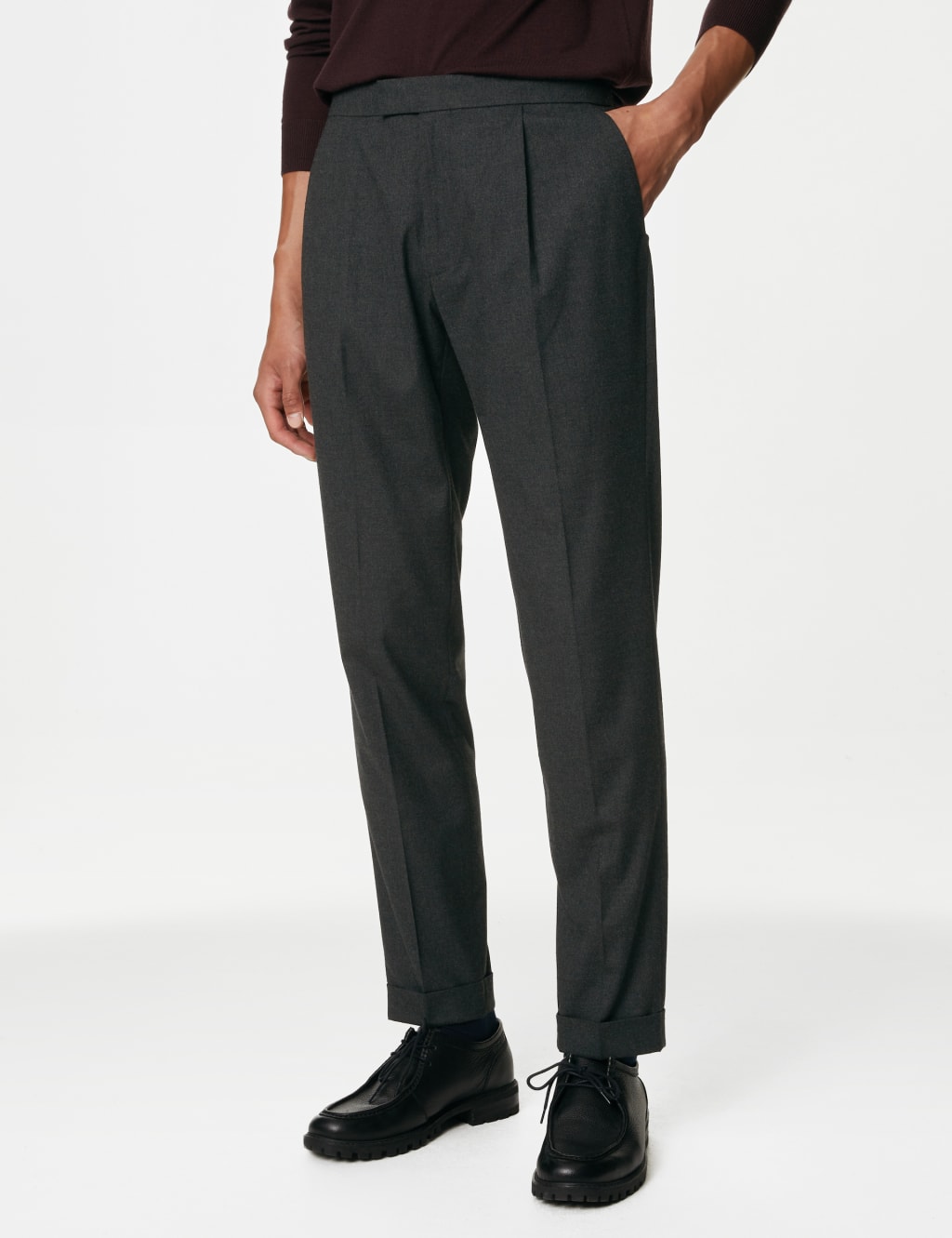 single pleat trousers