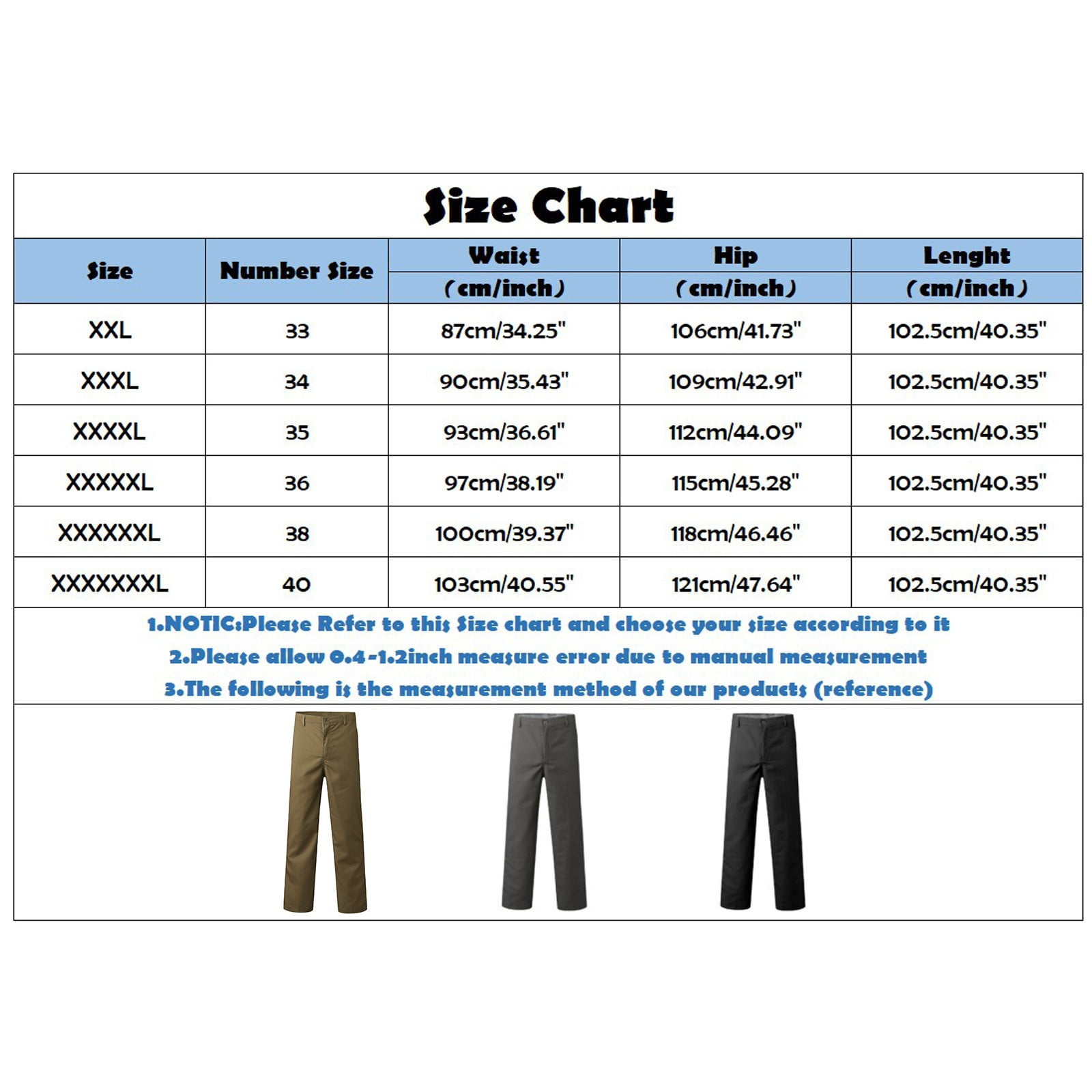 size chart dickies 873