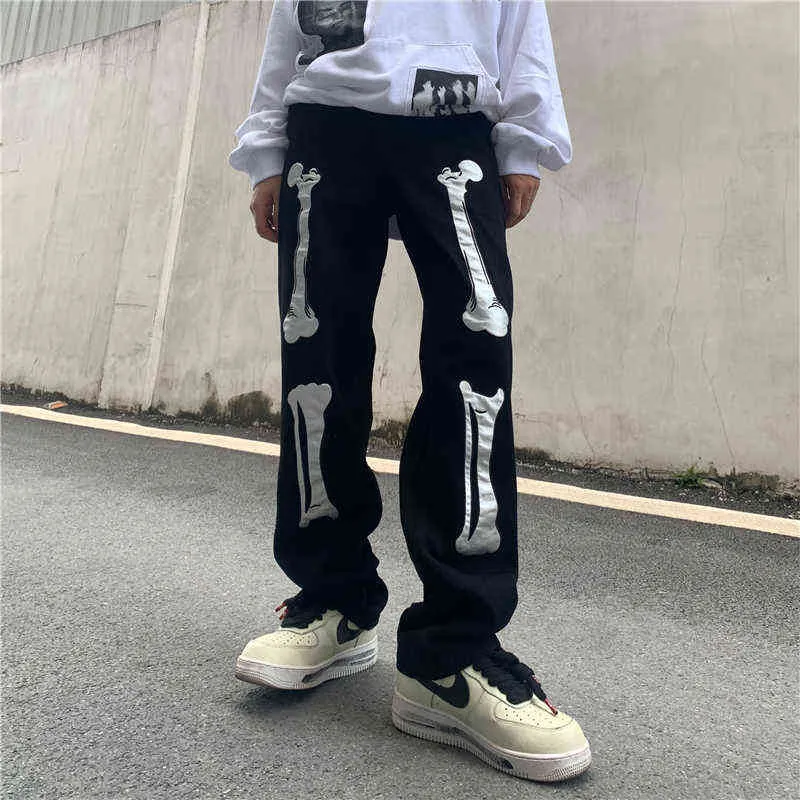 skeleton denim pants