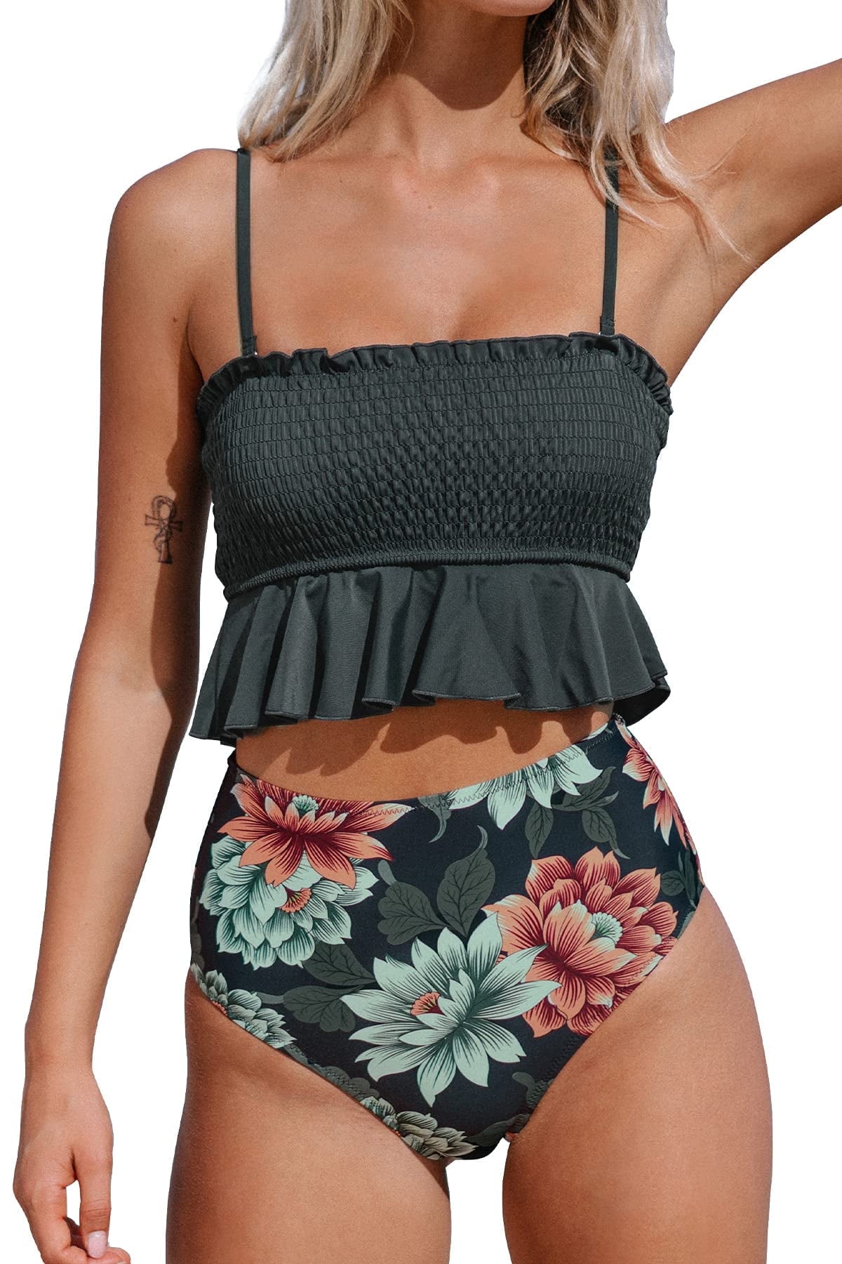 smocked high waisted bikini
