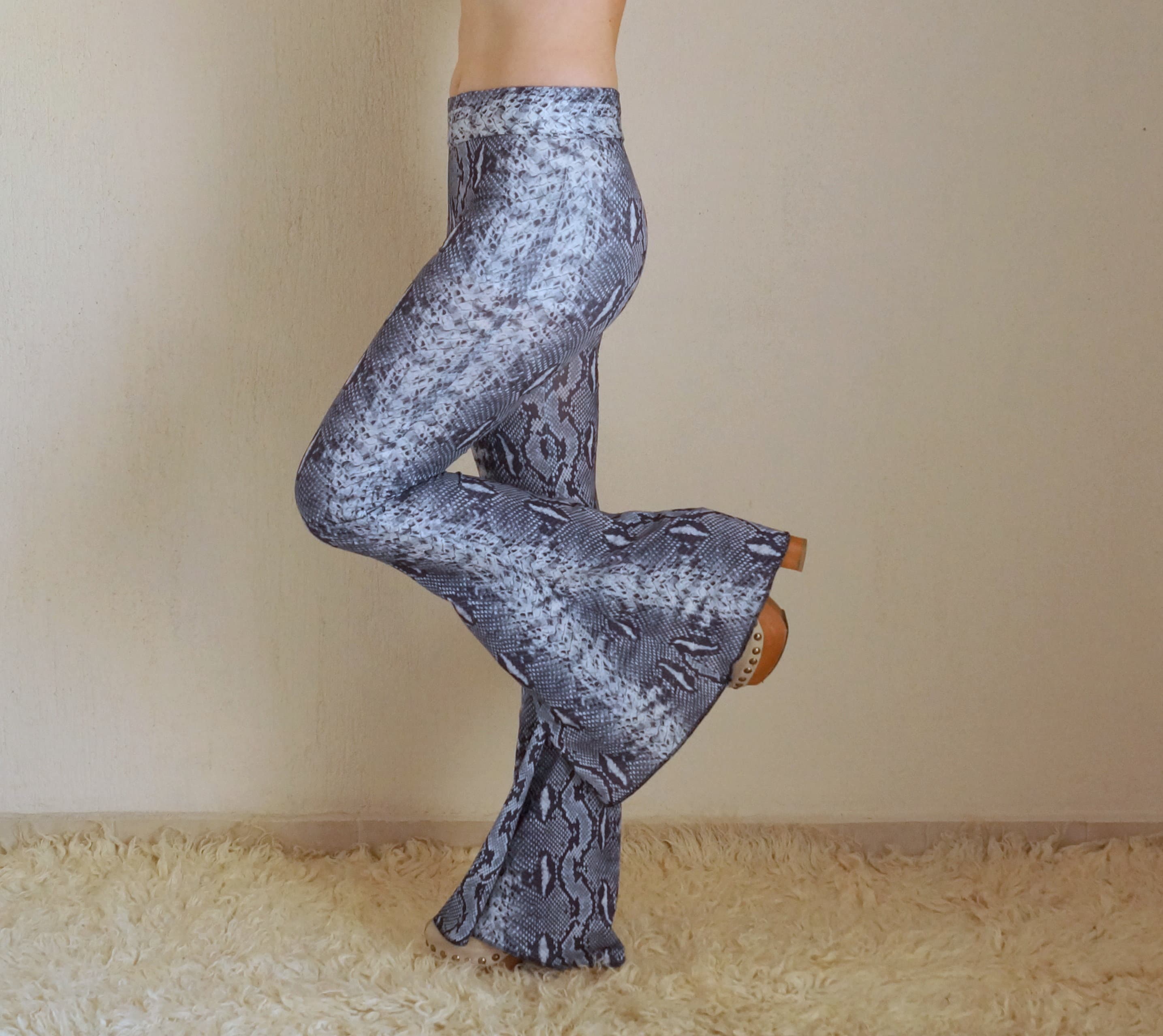 snakeskin bell bottom pants