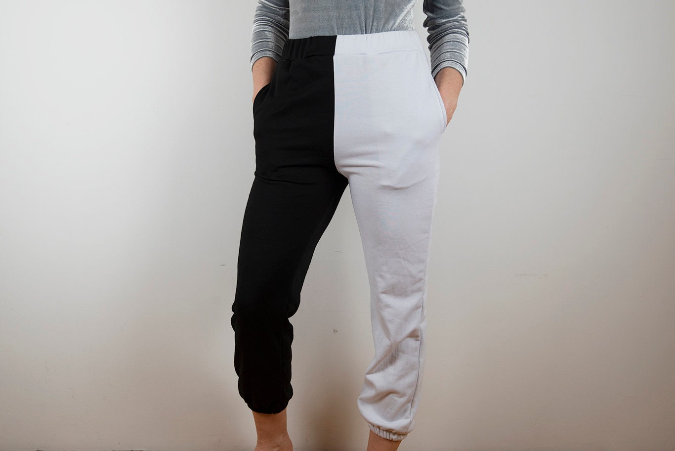 split black and white pants