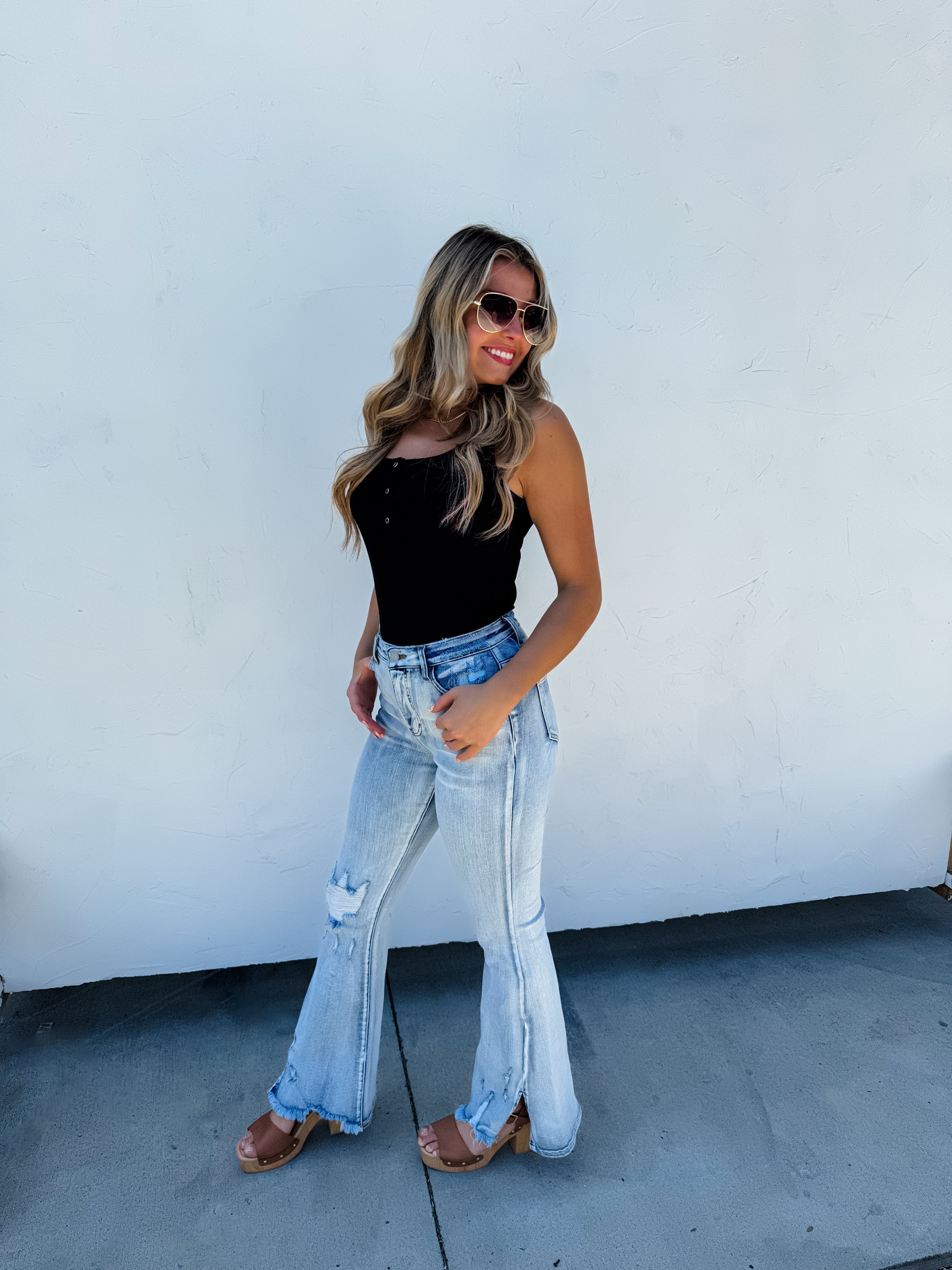 split bottom jeans